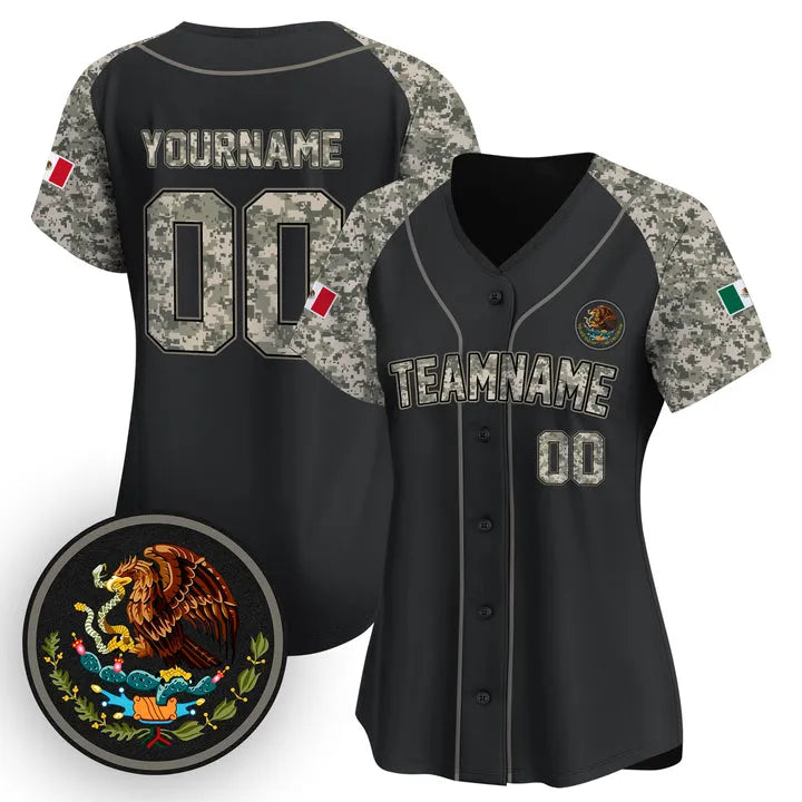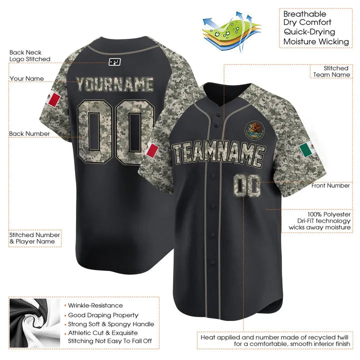 CUSTOM ALTERNATE BLACK CAMO - BLACK MEXICO BASEBALL JERSEY - EMBROIDERED