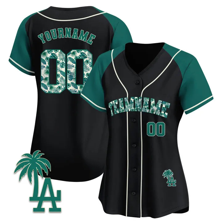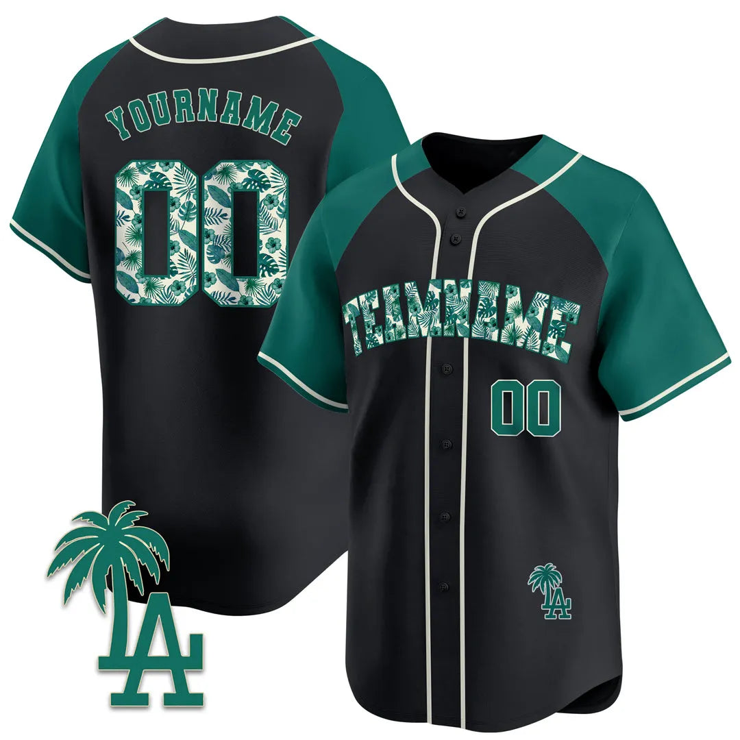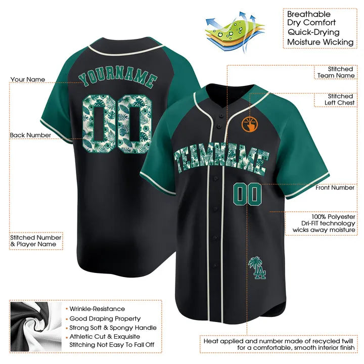 CUSTOM ALTERNATE GREEN TROPICAL FLORAL PATTERN BASEBALL JERSEY - EMBROIDERED