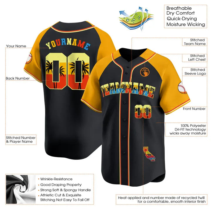 CUSTOM BLACK ALTERNATE GOLD CALIFORNIA BASEBALL JERSEY - EMBROIDERED
