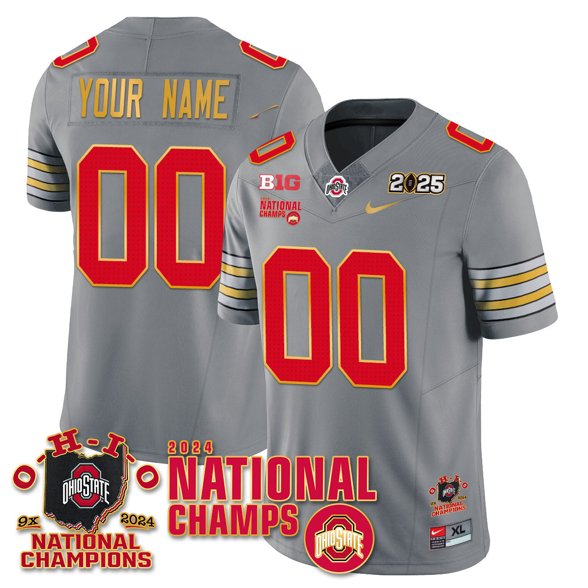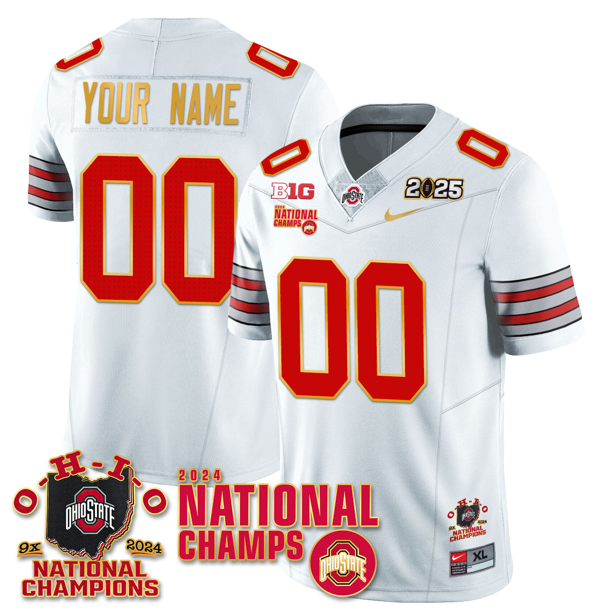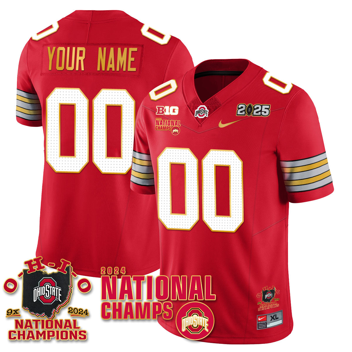 Custom Gender/Name Ohio State Buckeyes 'Heritage Stripe' 2025 CFP Patch - National Champions Gold Custom Jersey N6 - All Stitched