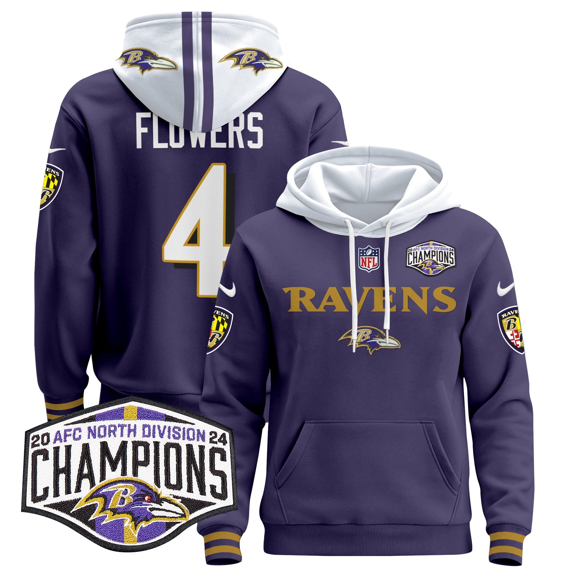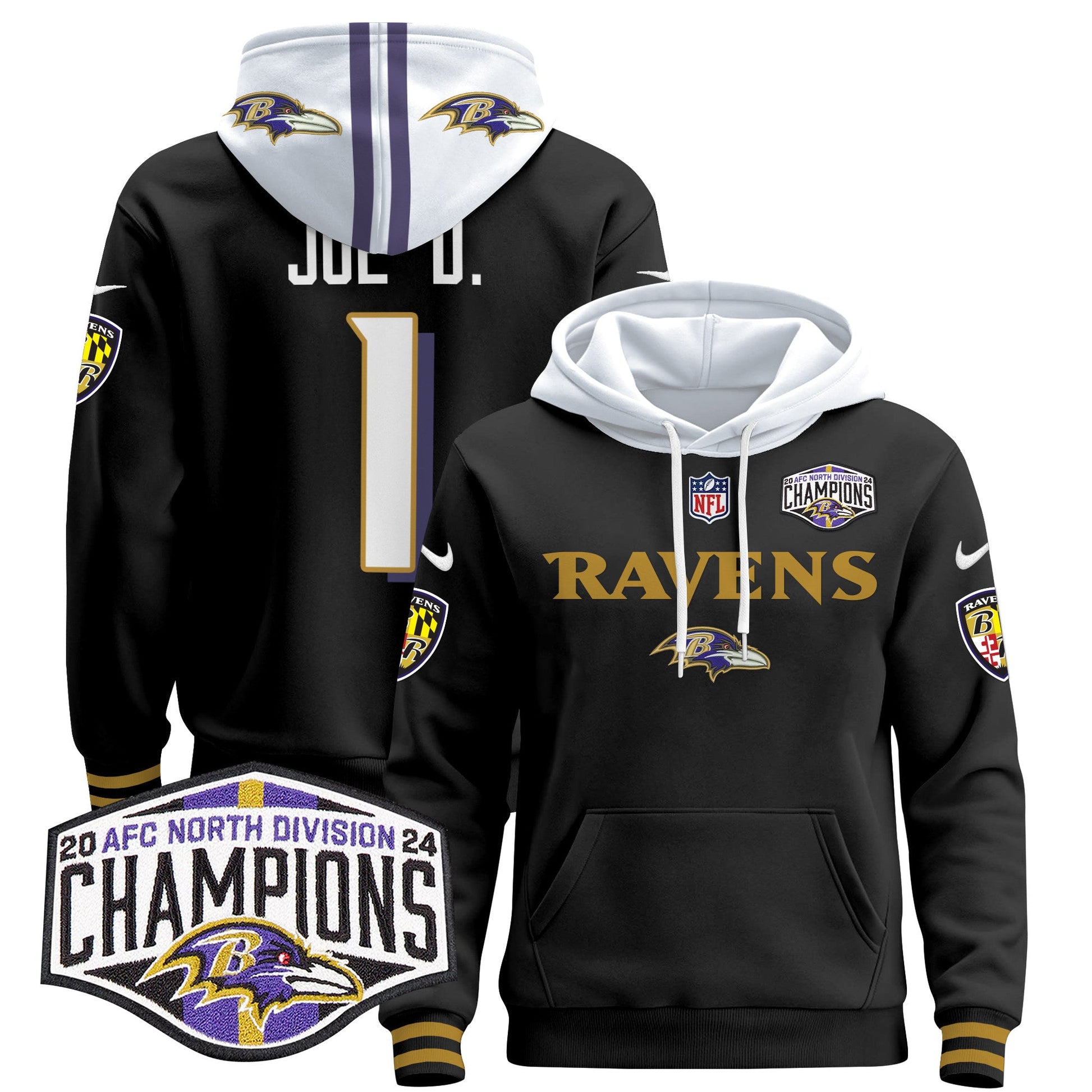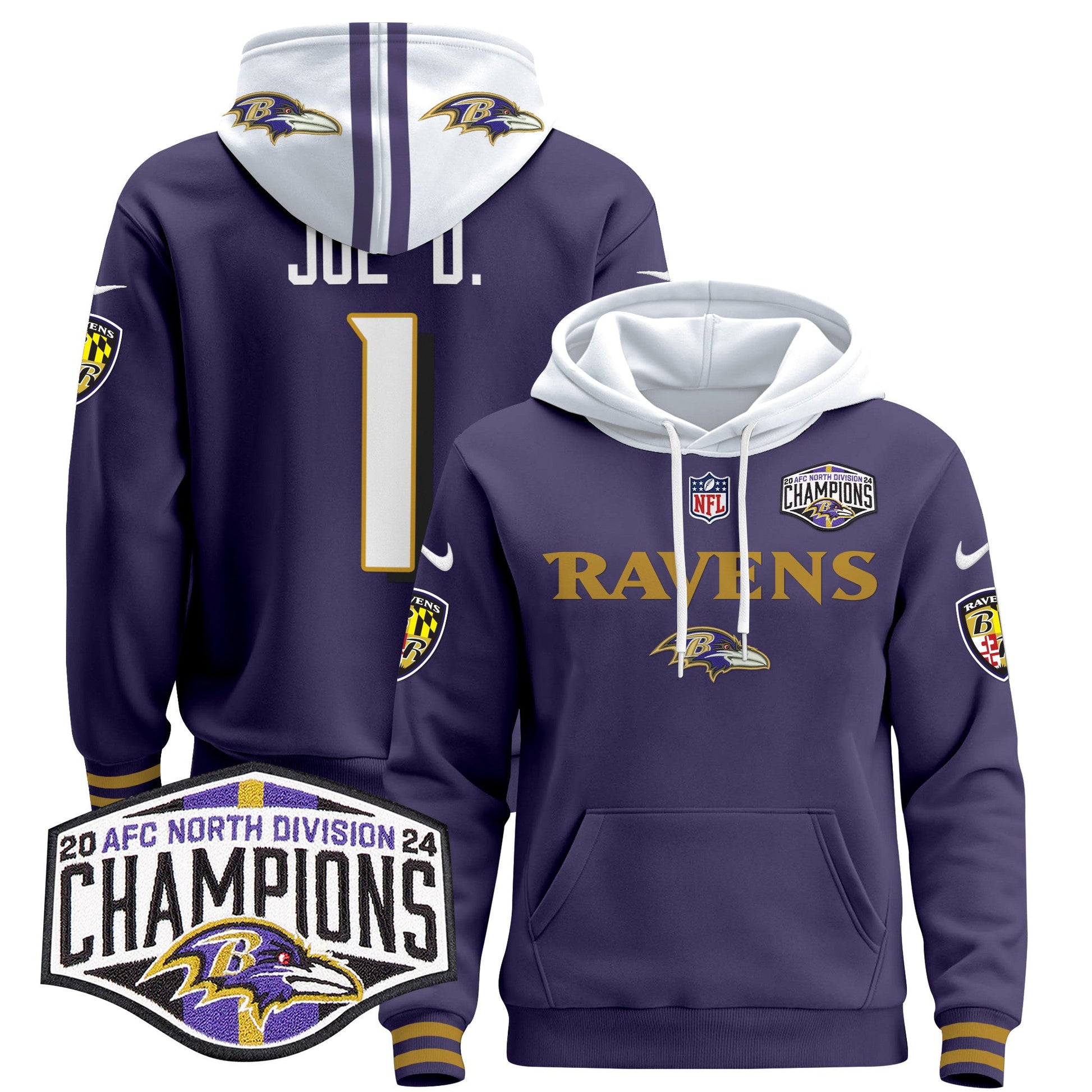Baltimore Ravens 2024 AFC North Division Champions Patch Pullover Hoodie - All Stitched