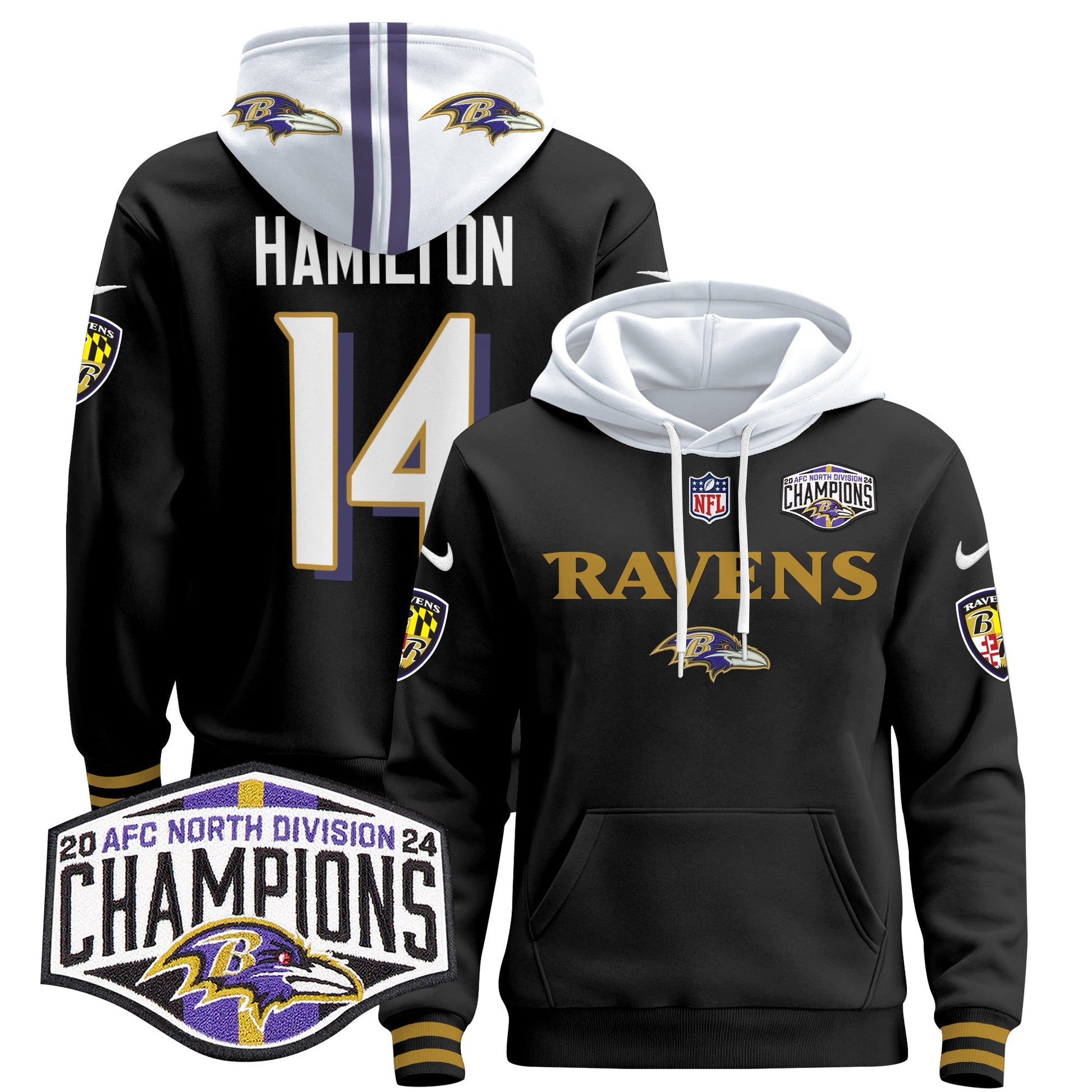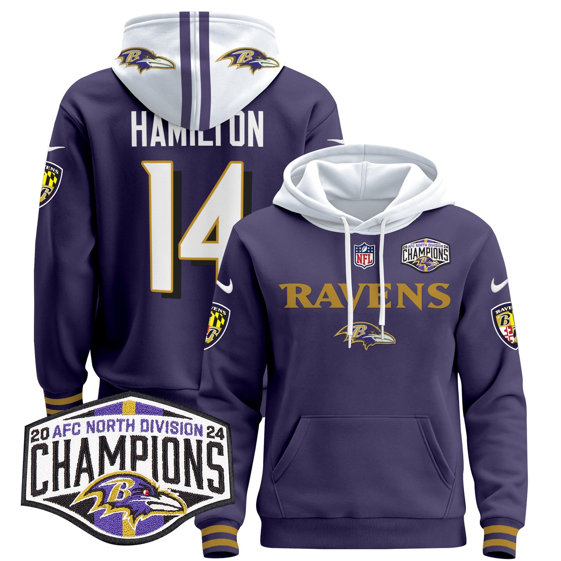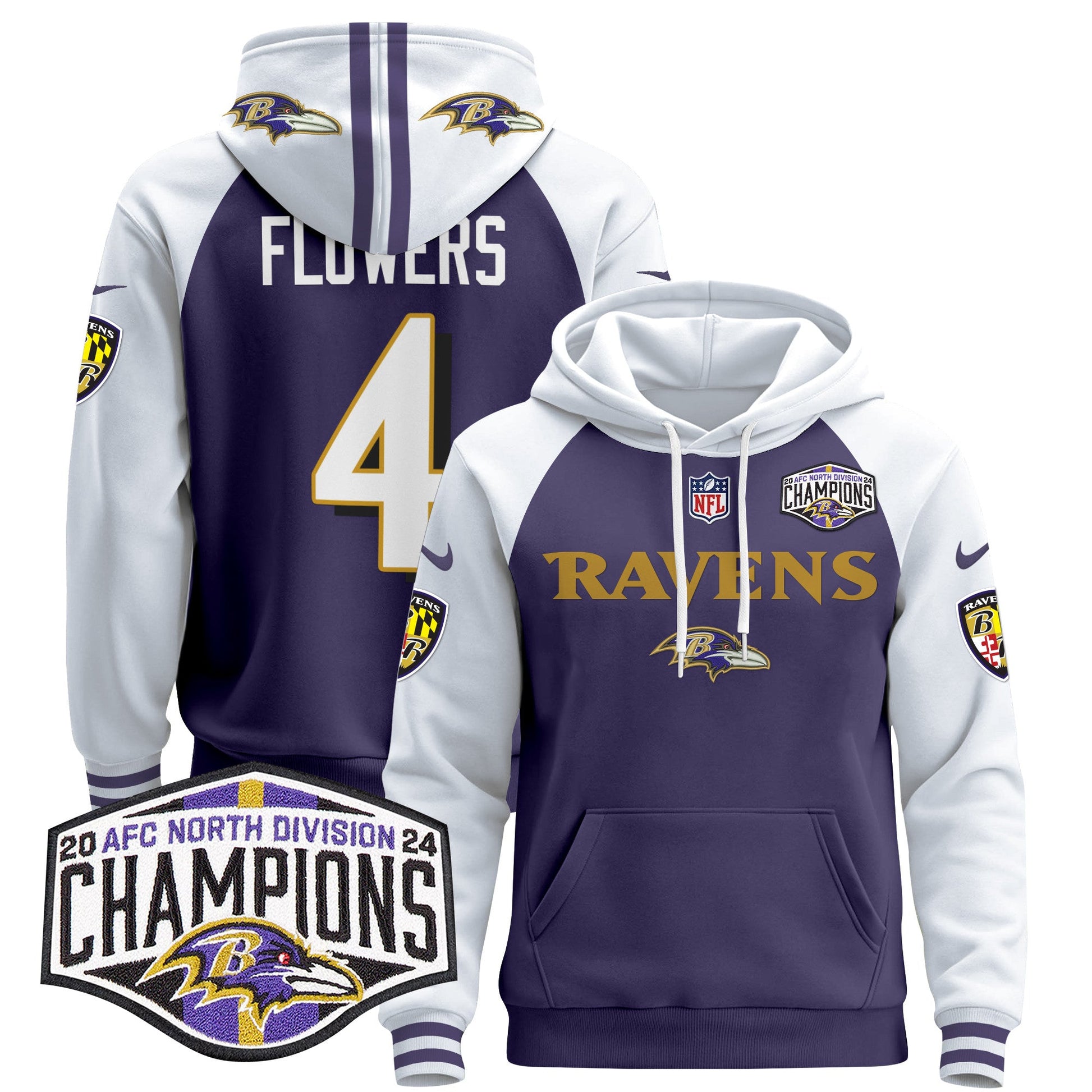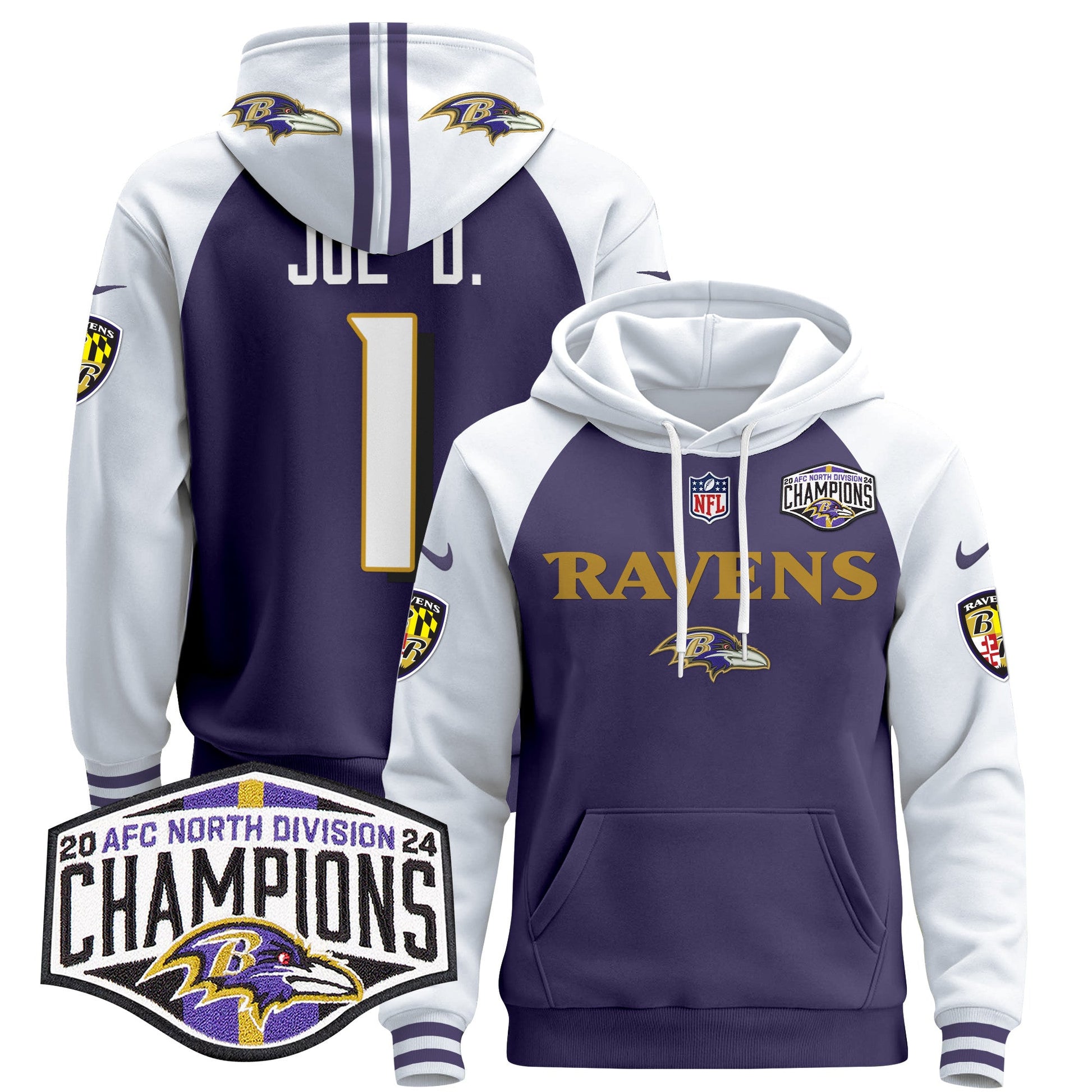Baltimore Ravens 2024 AFC North Division Champions Patch Pullover Hoodie - All Stitched
