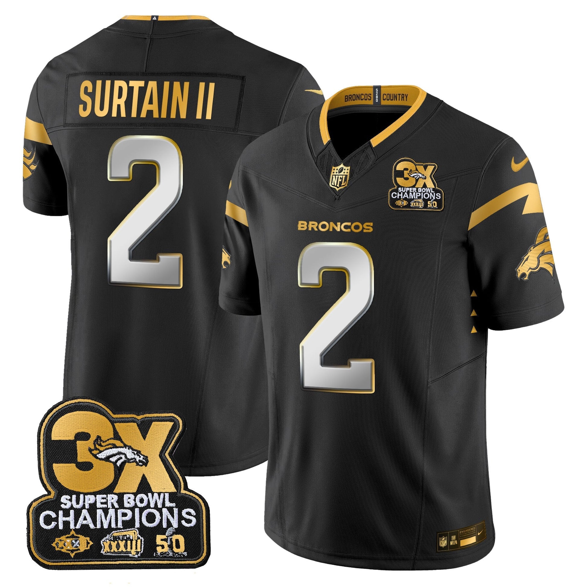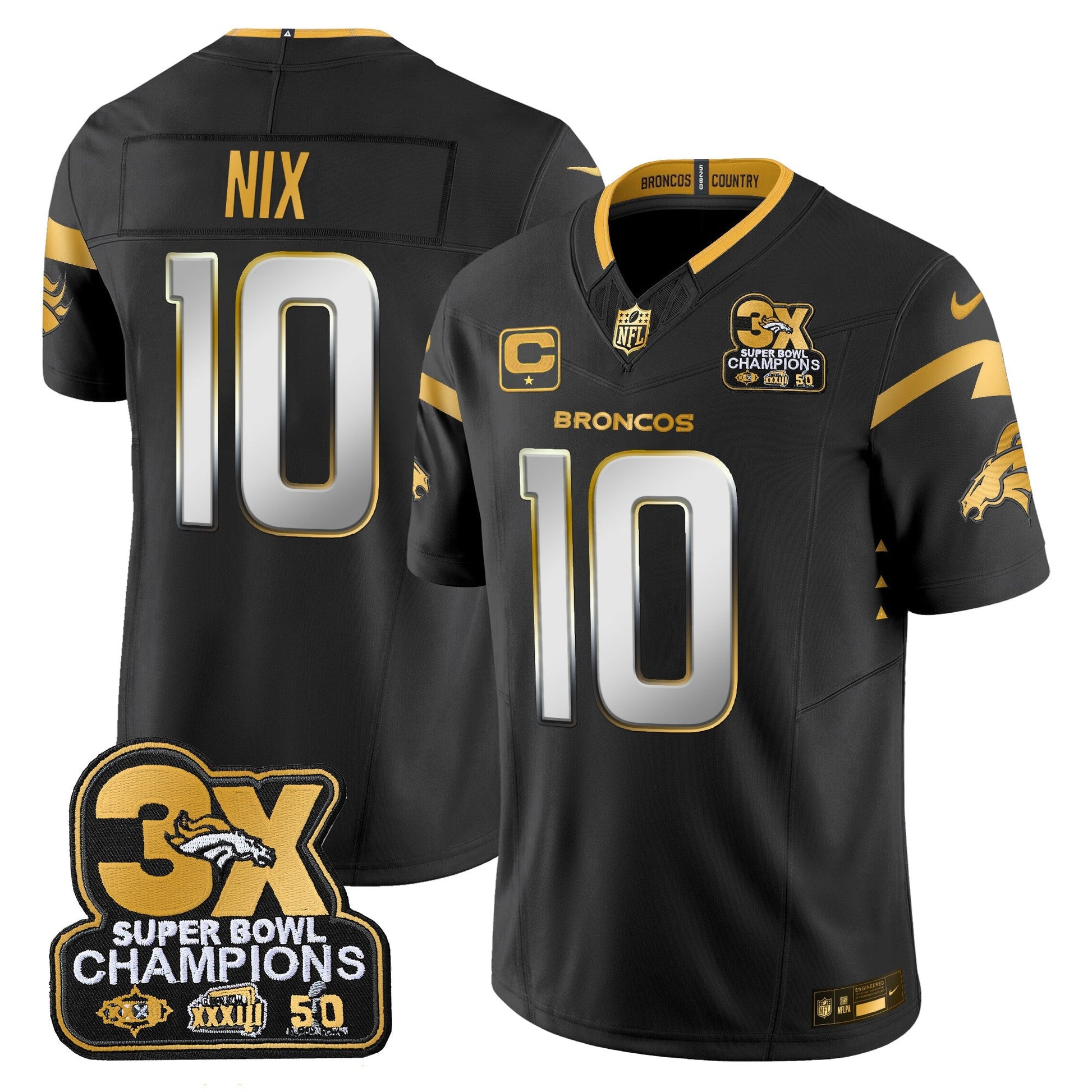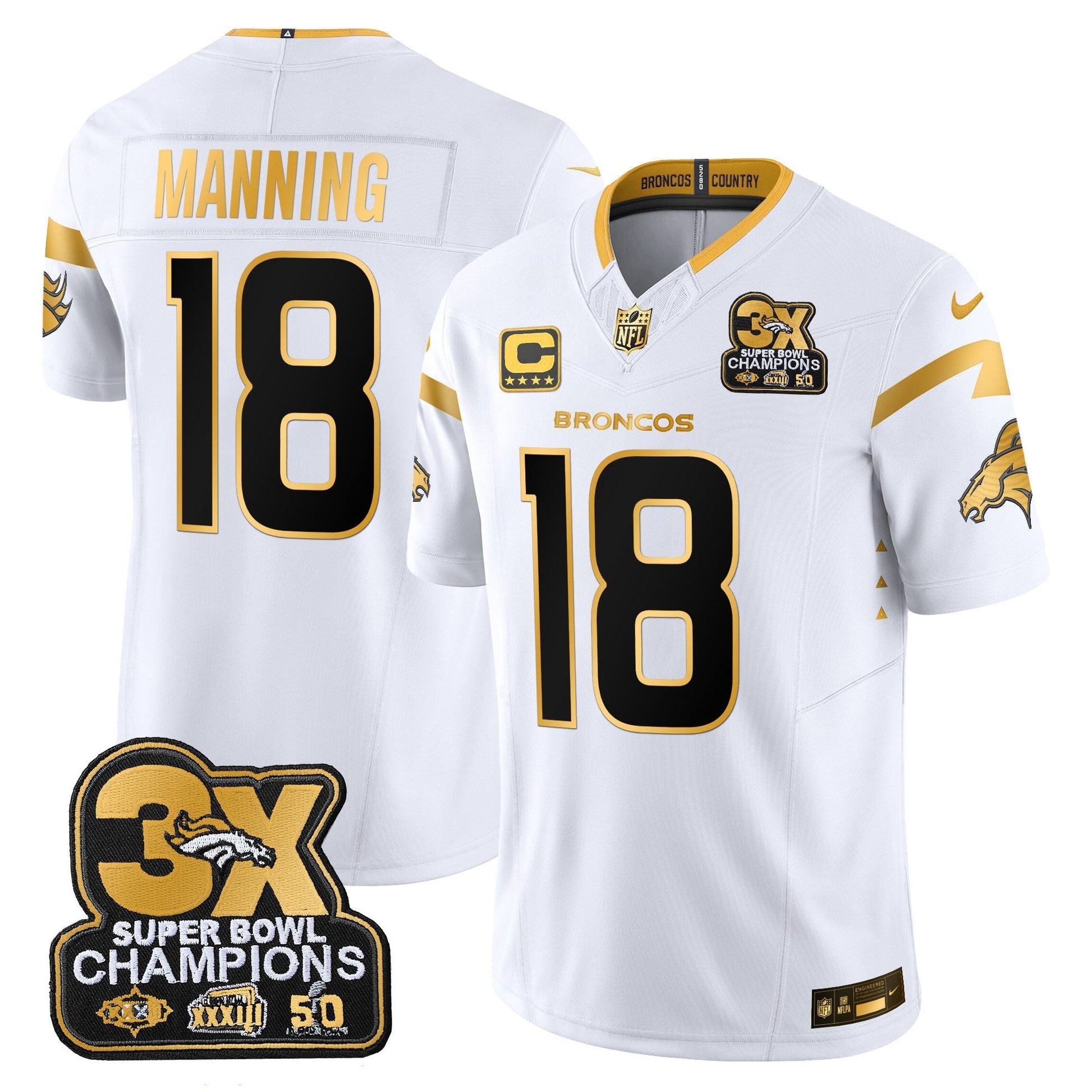 DEN 3-Time Champions Patch Gold Vapor Limited Jersey - All Stitched
