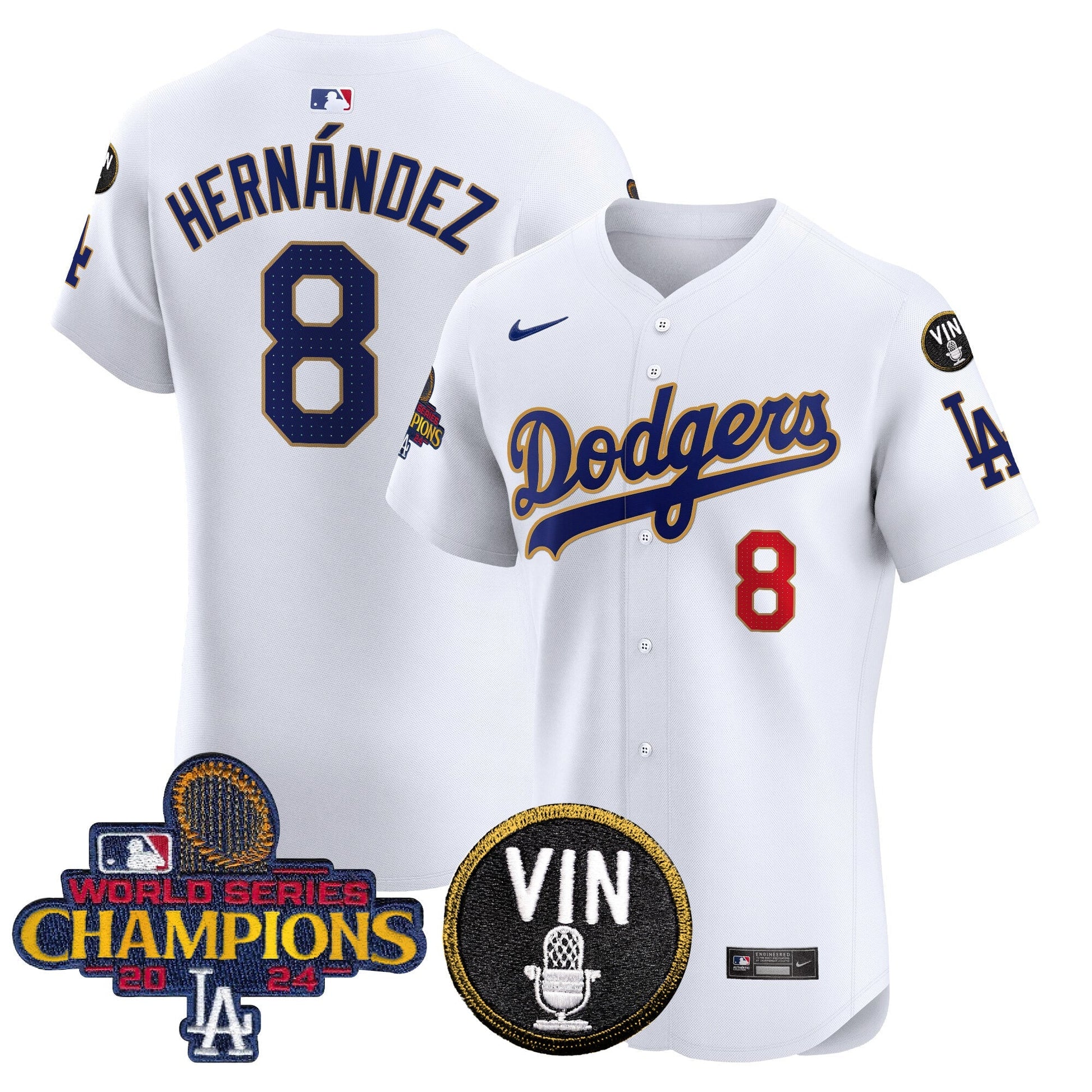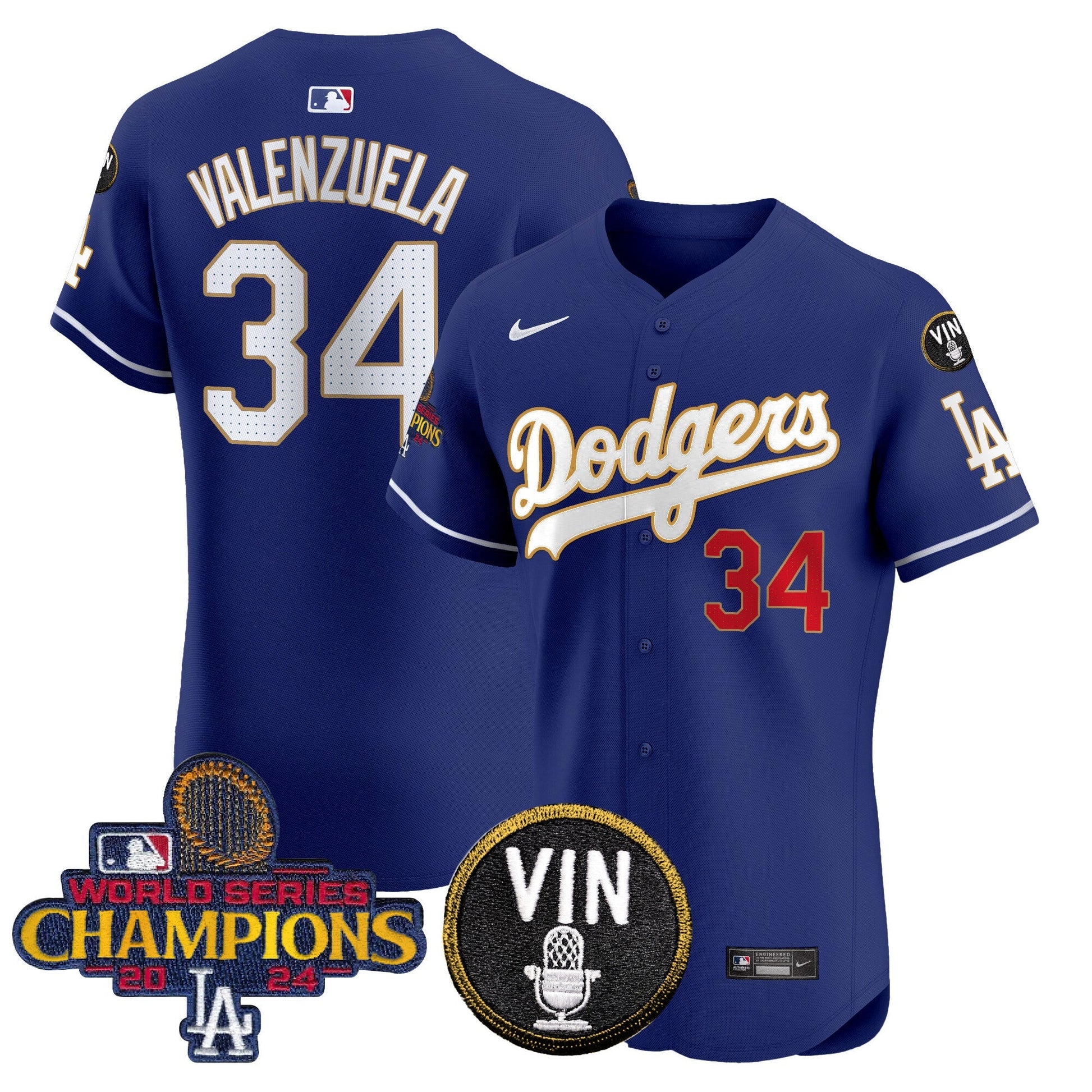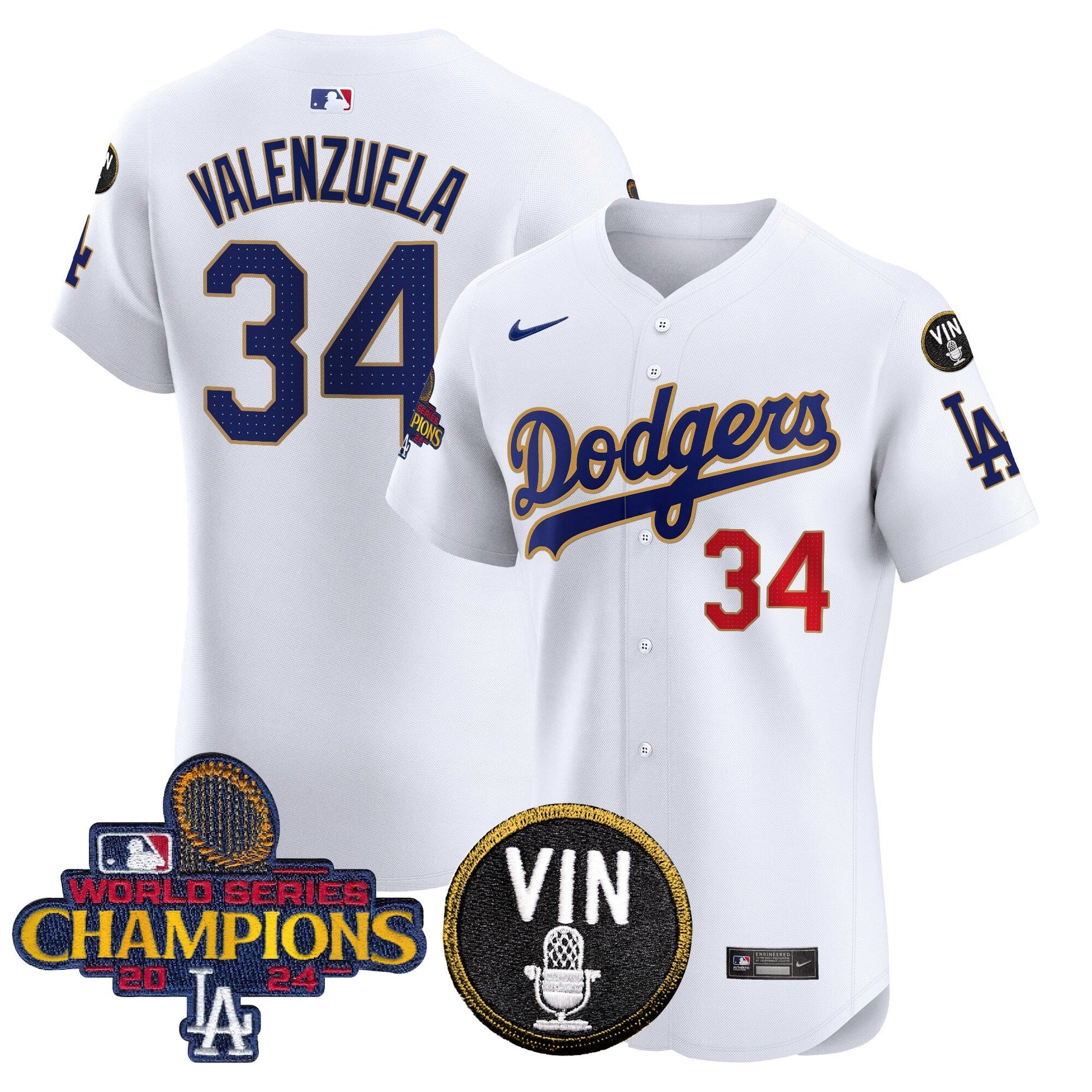 Dodgers 2024 World Series Champions Gold Trim Vapor Premier Elite Jersey - All Stitched