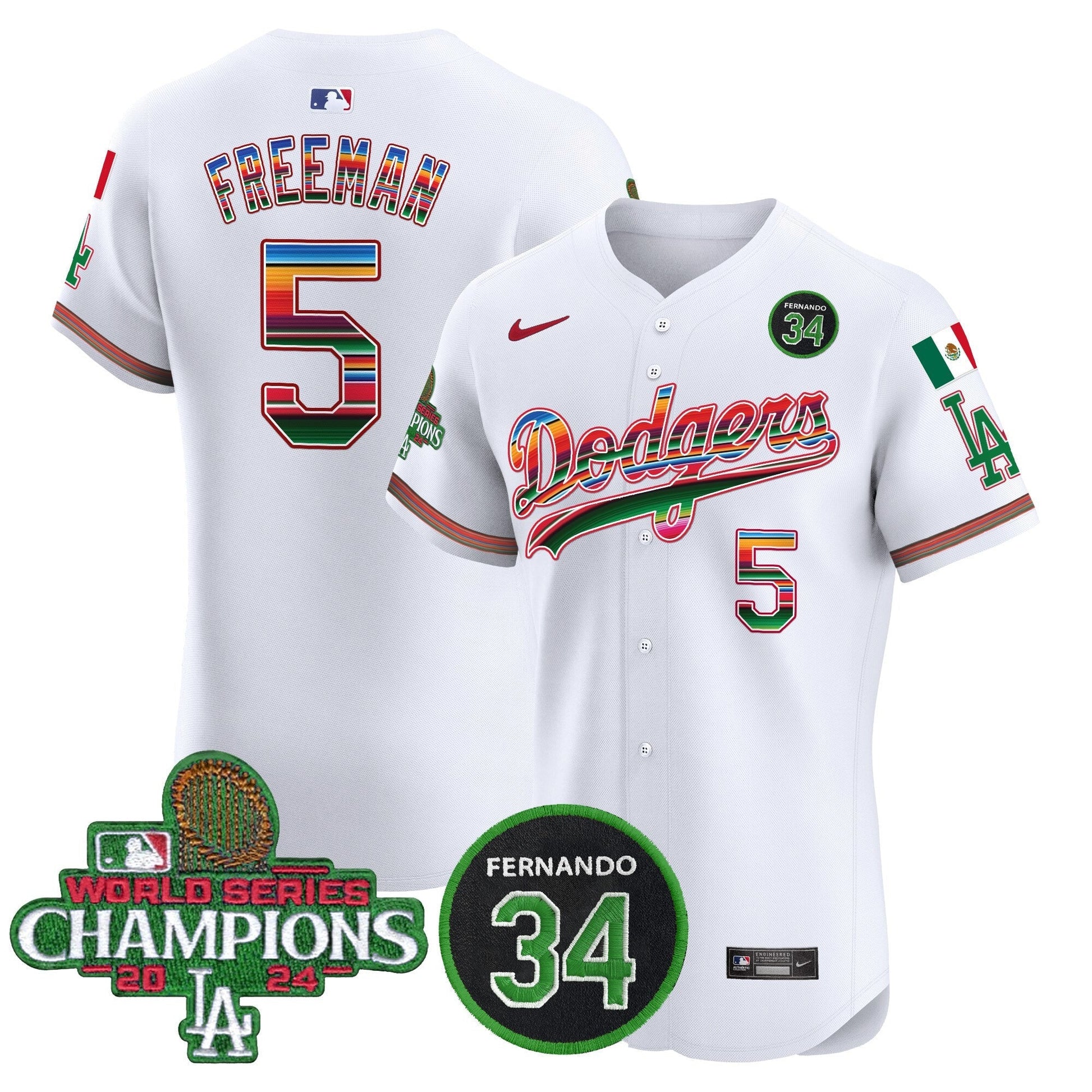 Dodgers Mexico 2024 World Series Champions Vapor Premier Elite Jersey V2 - All Stitched