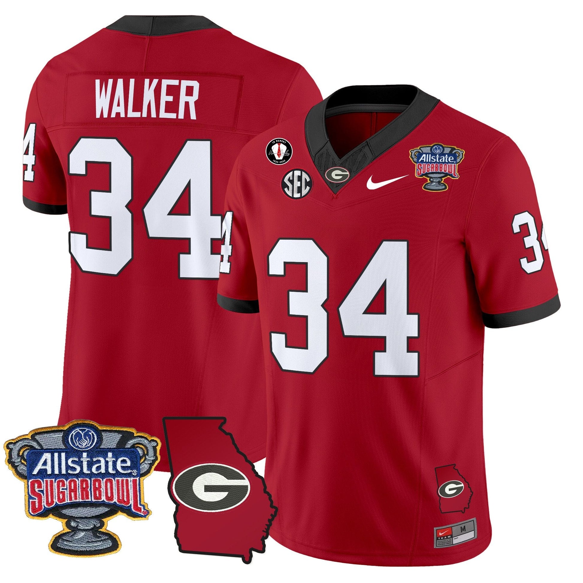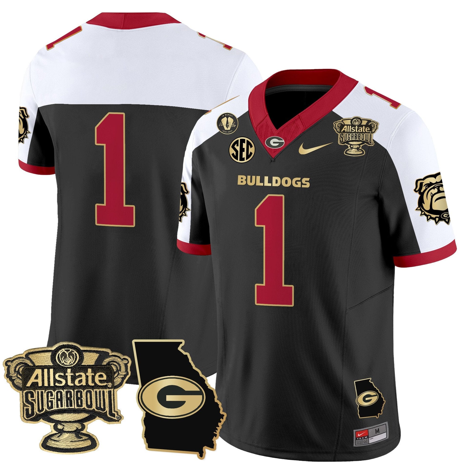 Georgia Bulldogs 2025 Sugar Bowl & Georgia Map Patch Vapor Limited Jersey - All Stitched