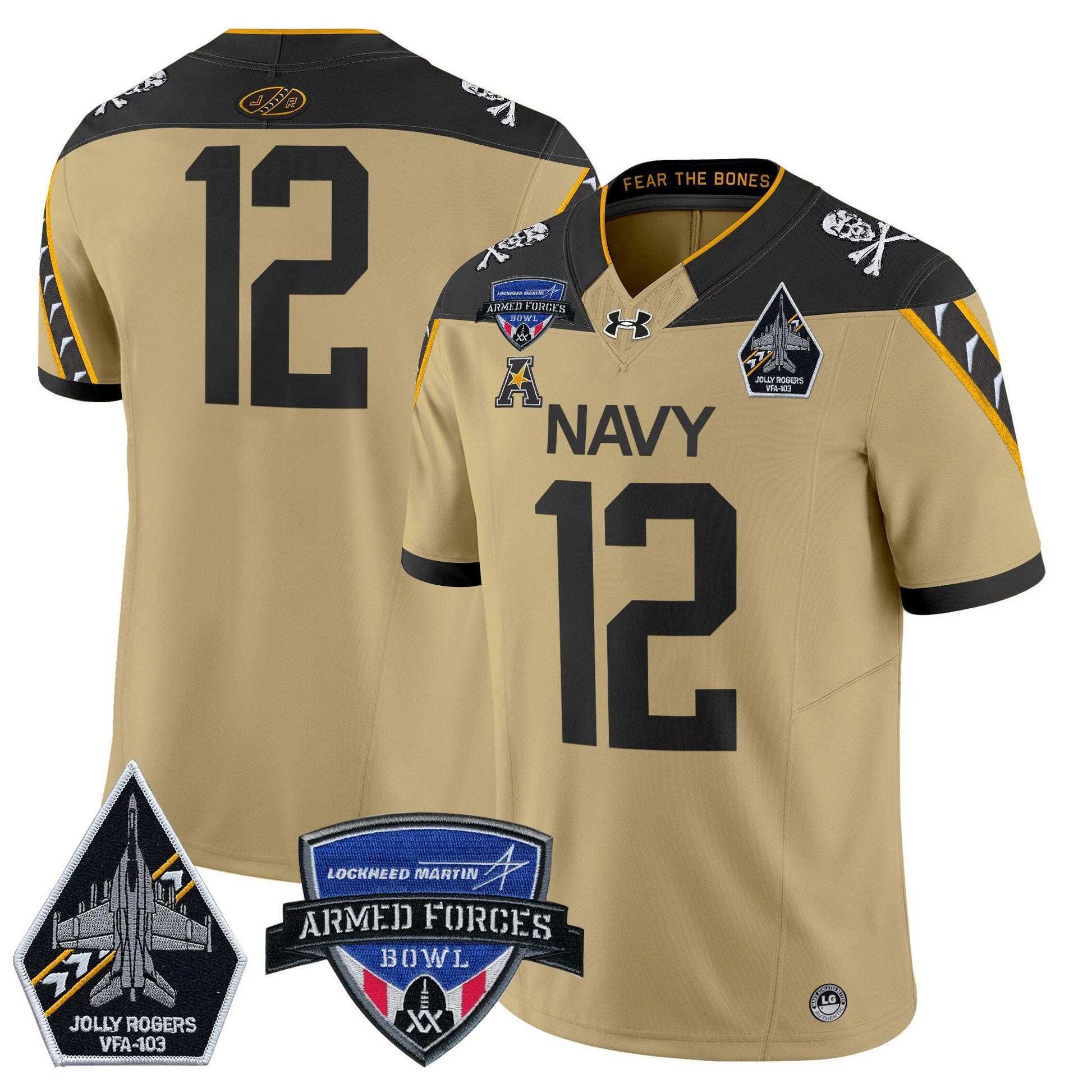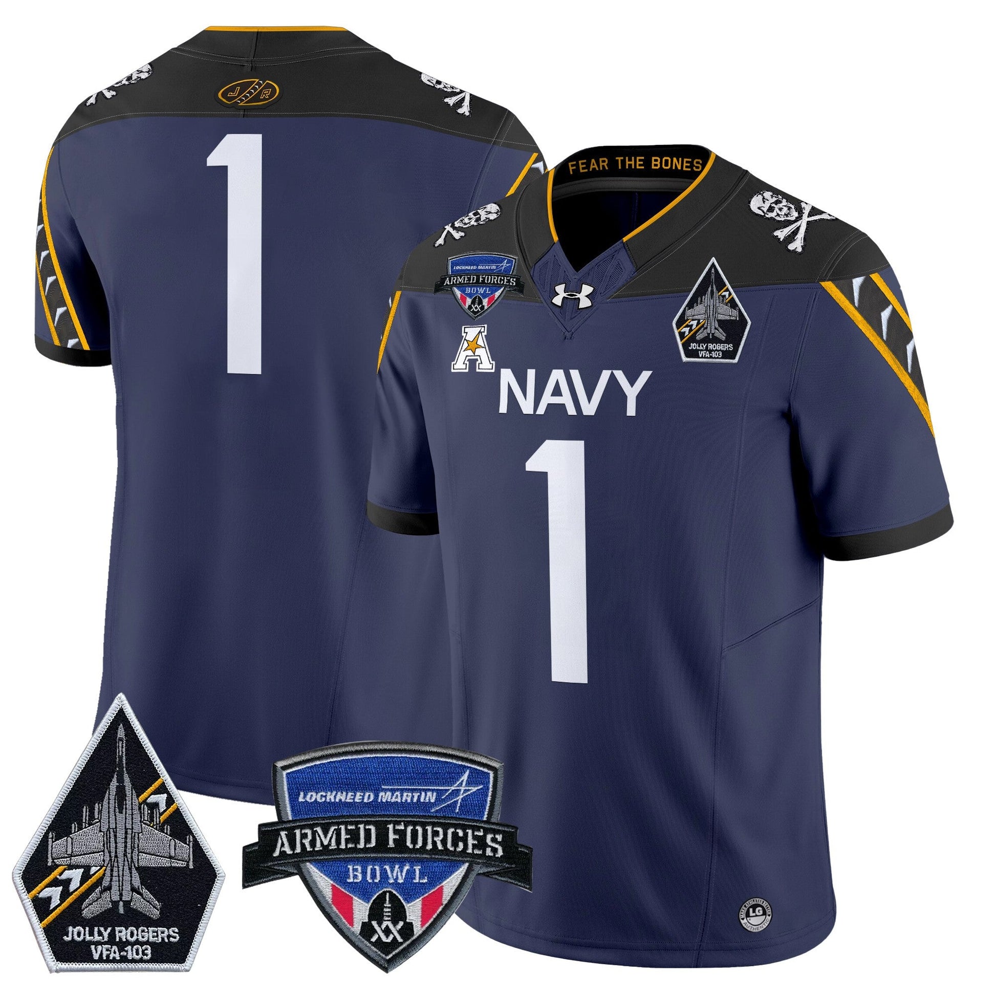 Navy Midshipmen 2025 Armed Forces Bowl Patch Vapor Limited Jersey - All Stitched
