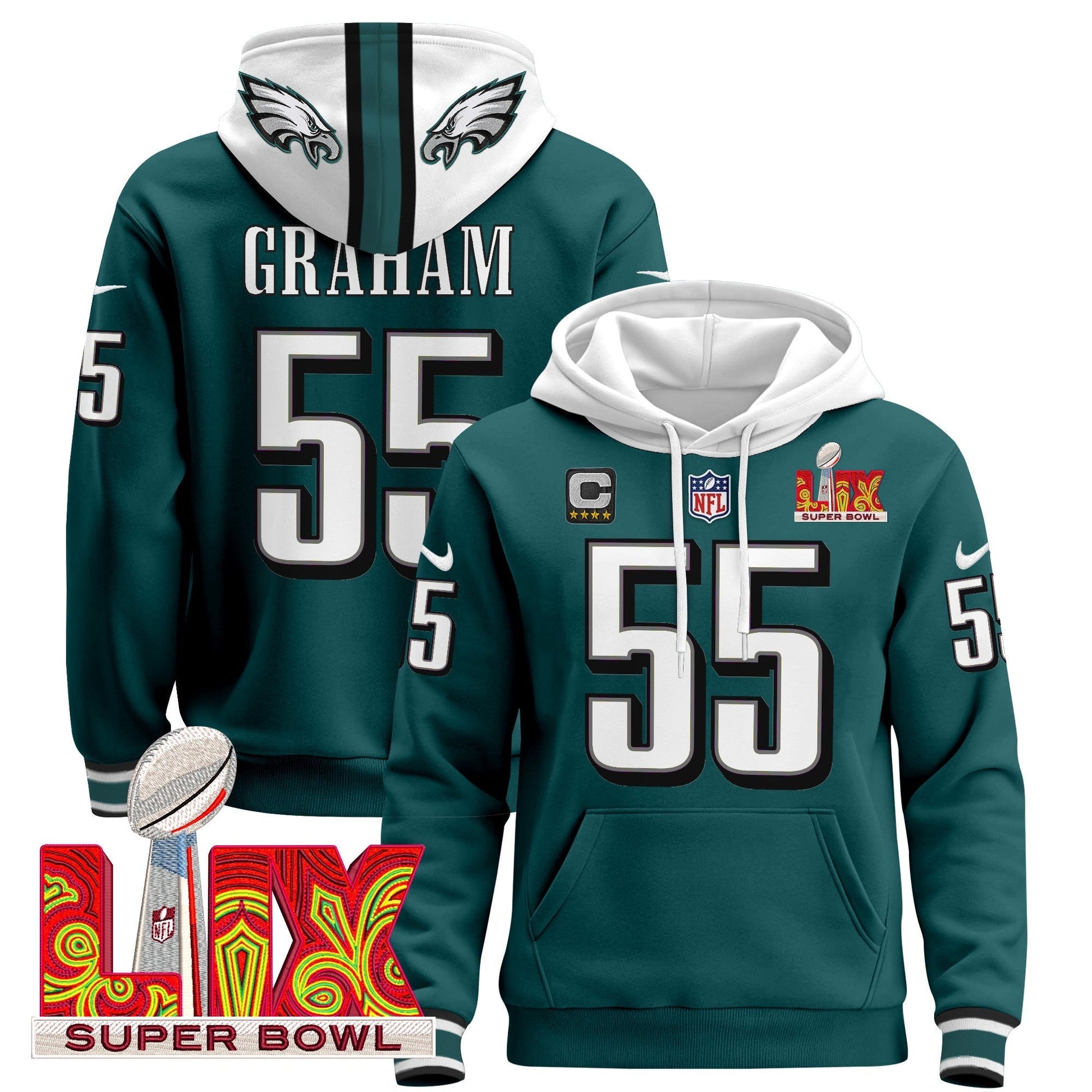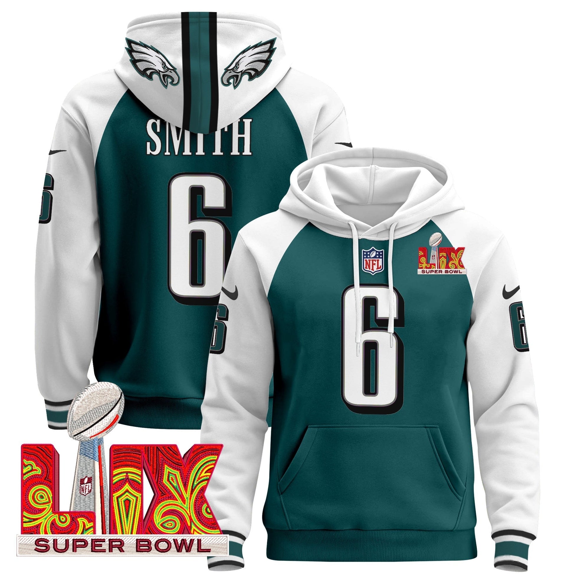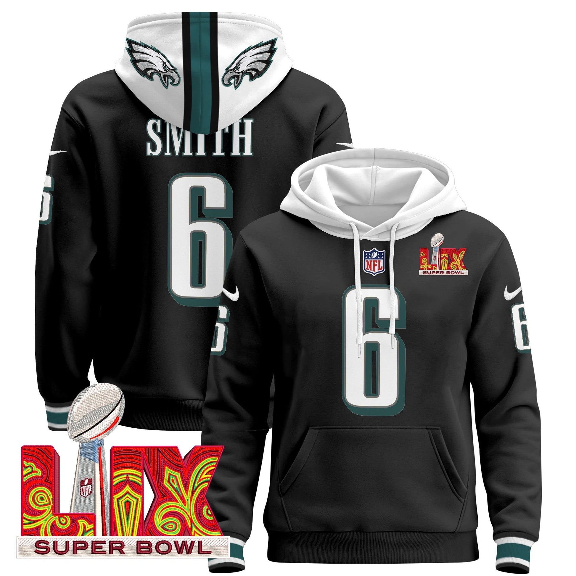 PHI Super Bowl LIX Patch Pullover Hoodie - All Stitched