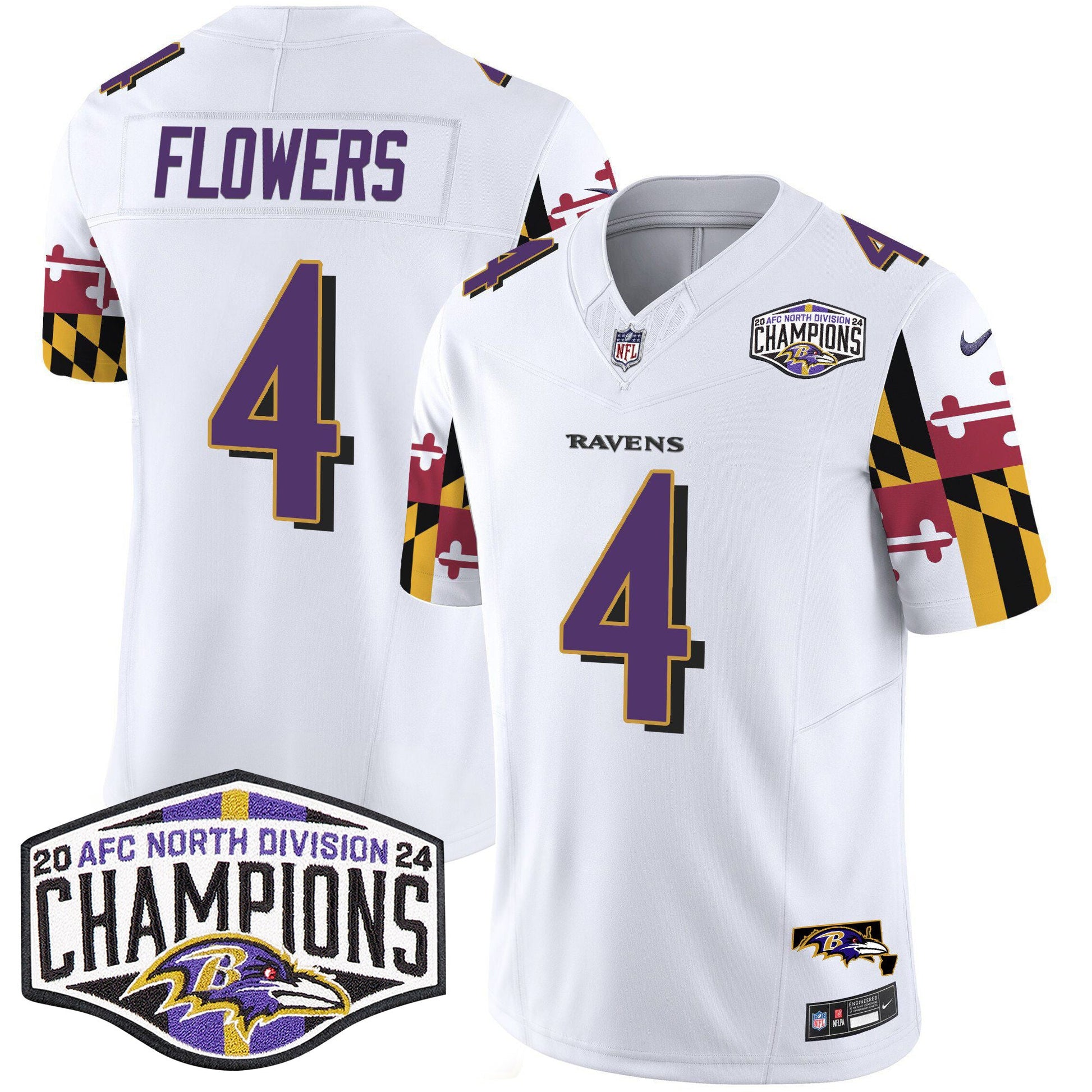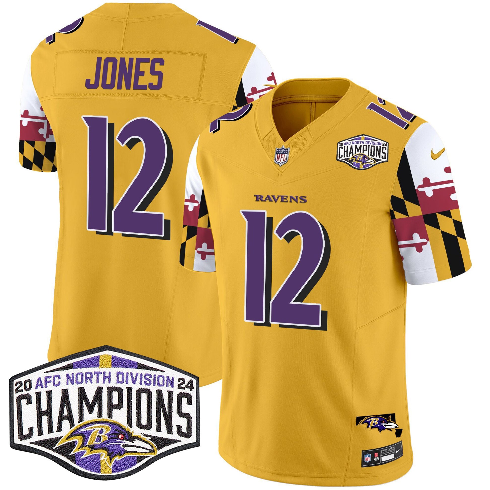 Ravens Maryland Flag 2024 AFC North Division Champions Patch Vapor Limited Jersey - All Stitched