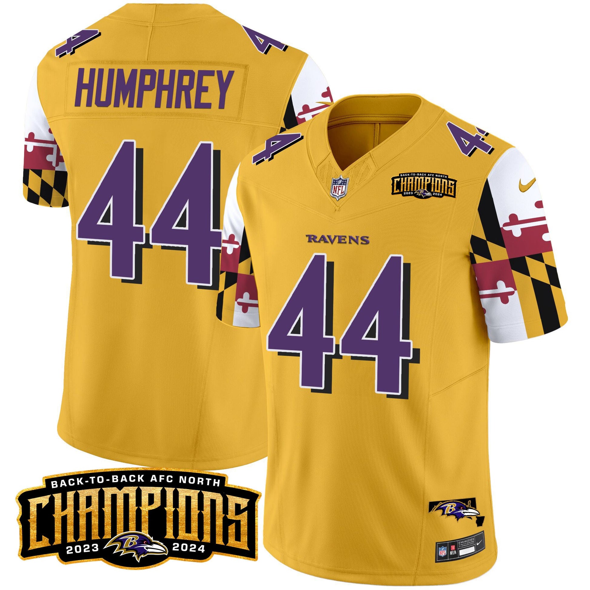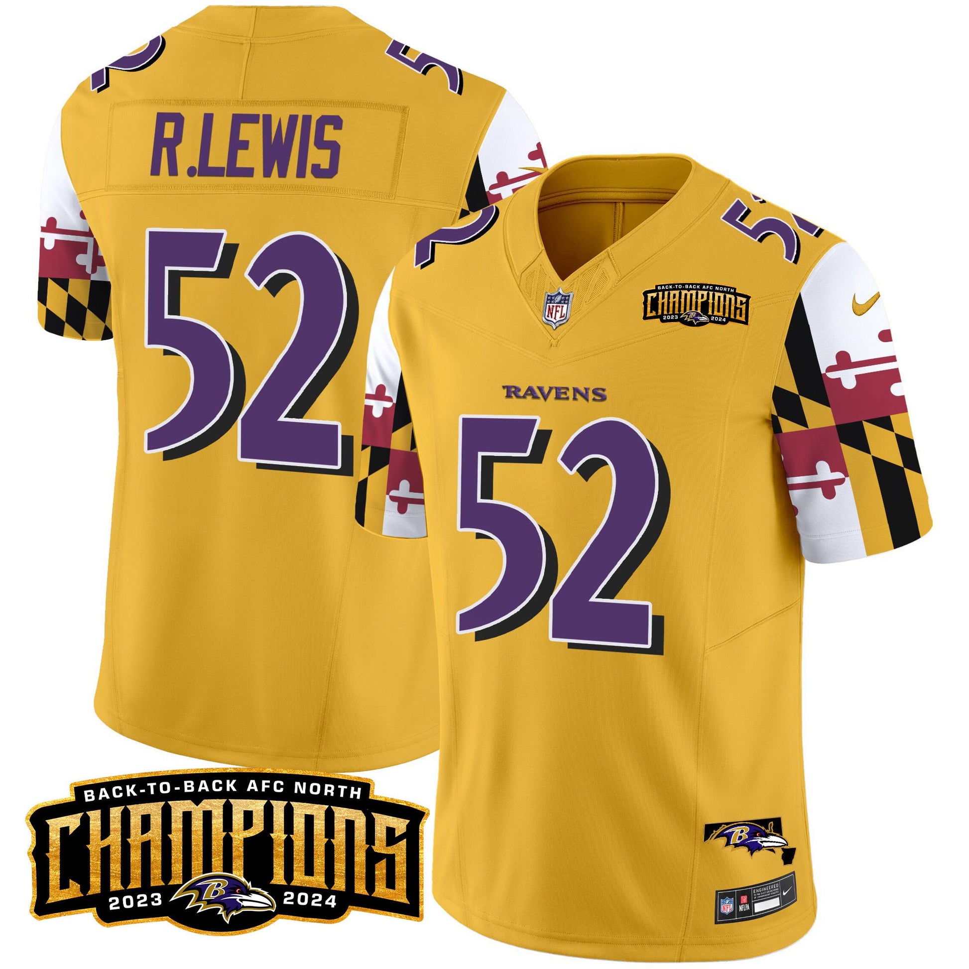 Ravens Maryland Flag Back To Back AFC North Champions Patch Vapor Limited Jersey - All Stitched