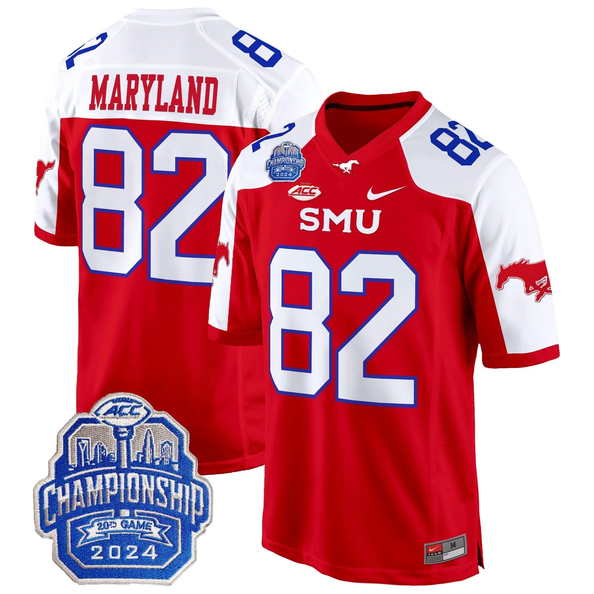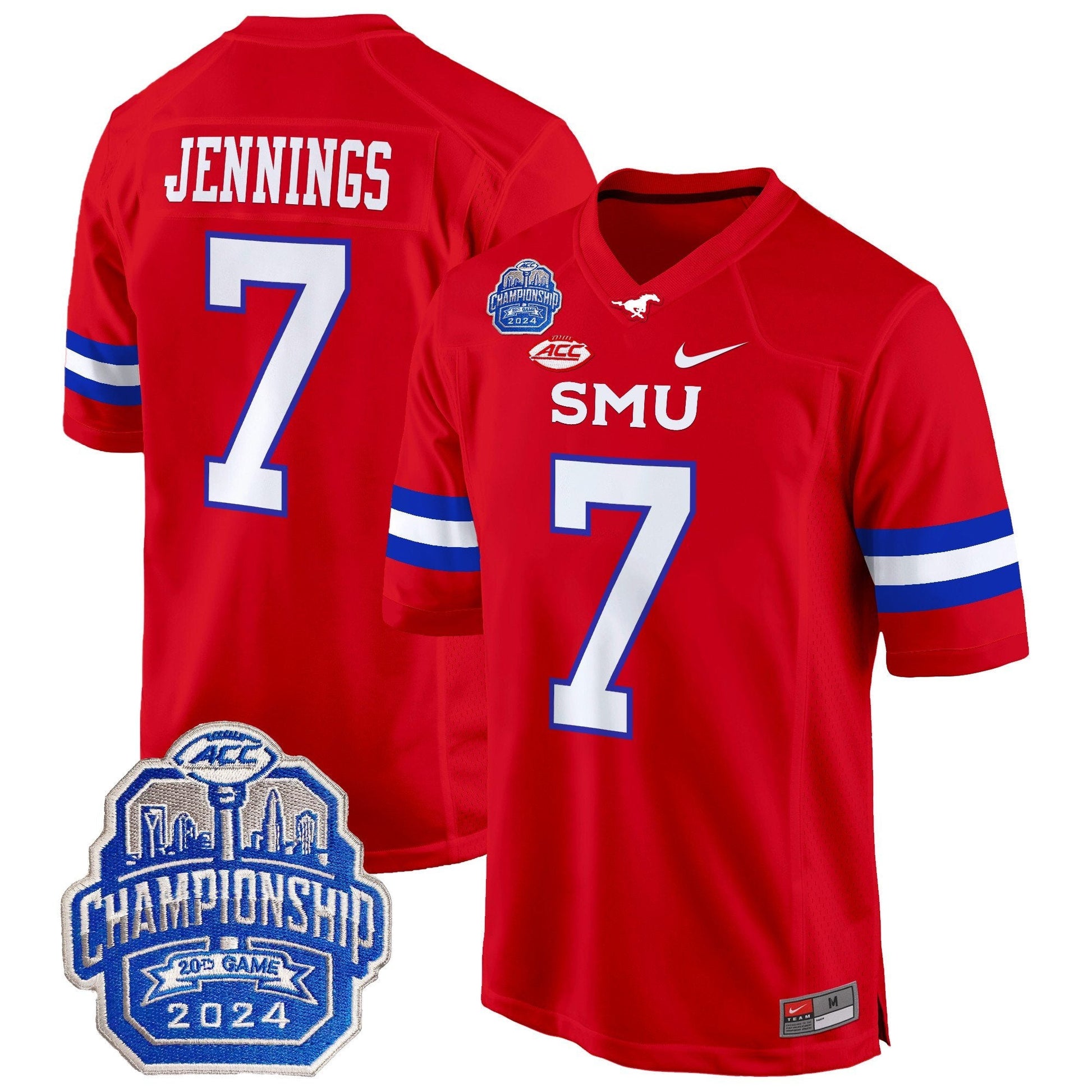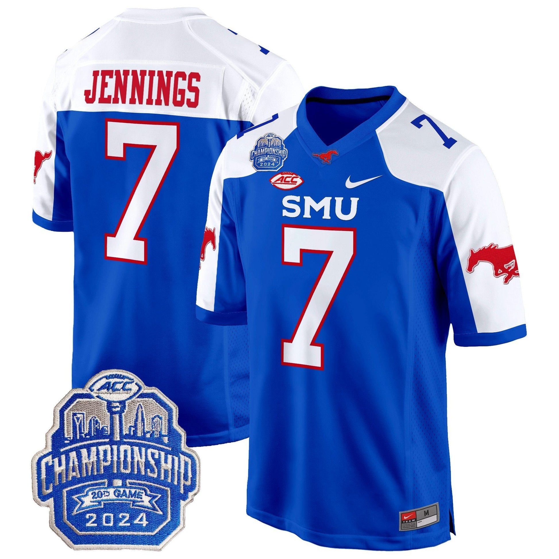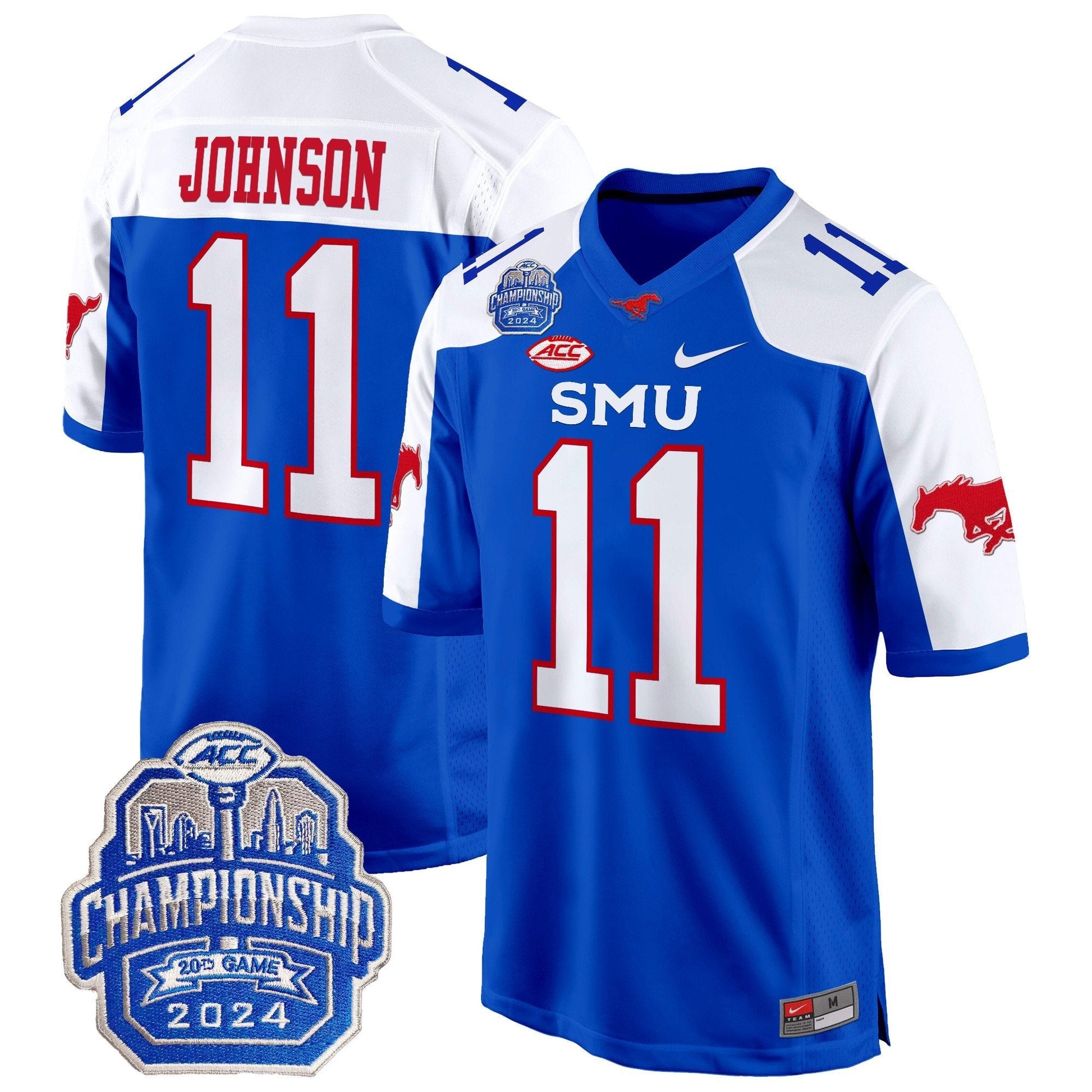 SMU Mustangs 2024 ACC Championship Patch Game Jersey - All Stitched