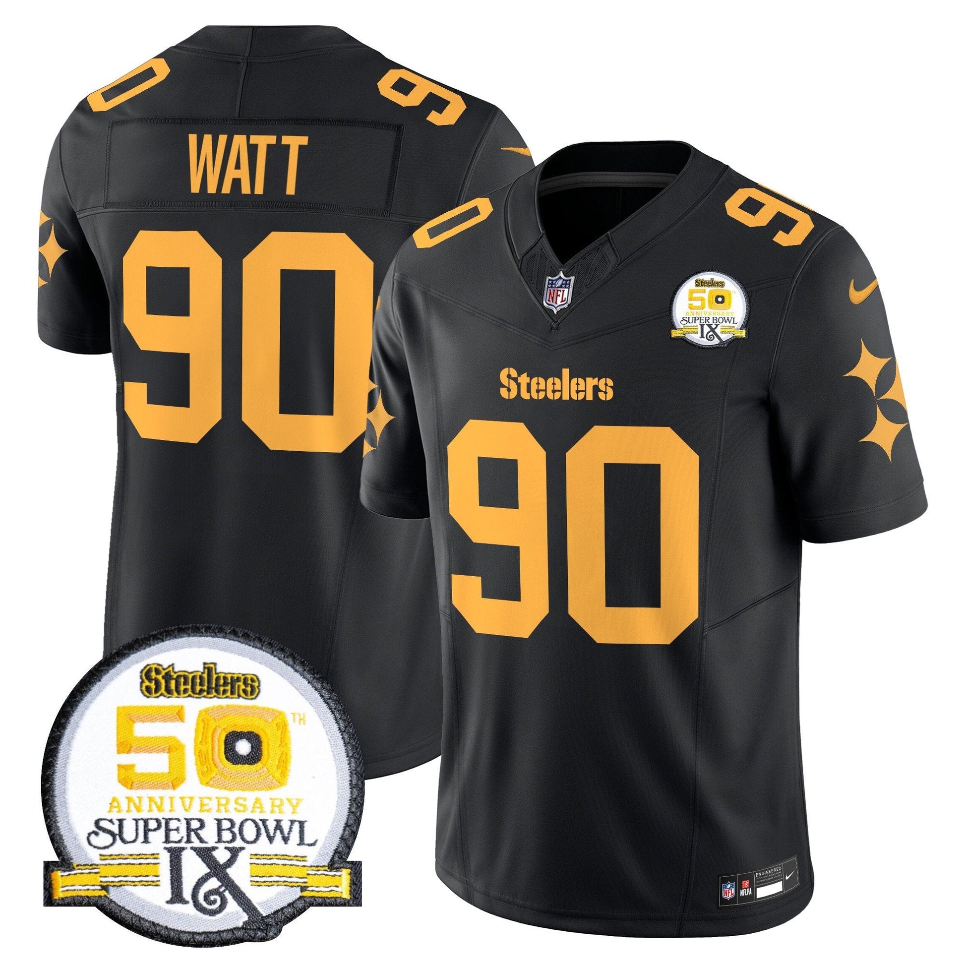 Steelers 50th Anniversary Of Super Bowl IX Patch Vapor Limited Jersey V2 - All Stitched