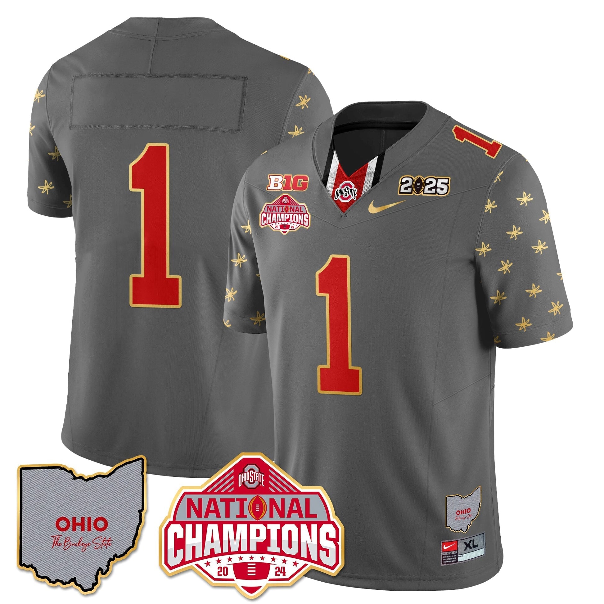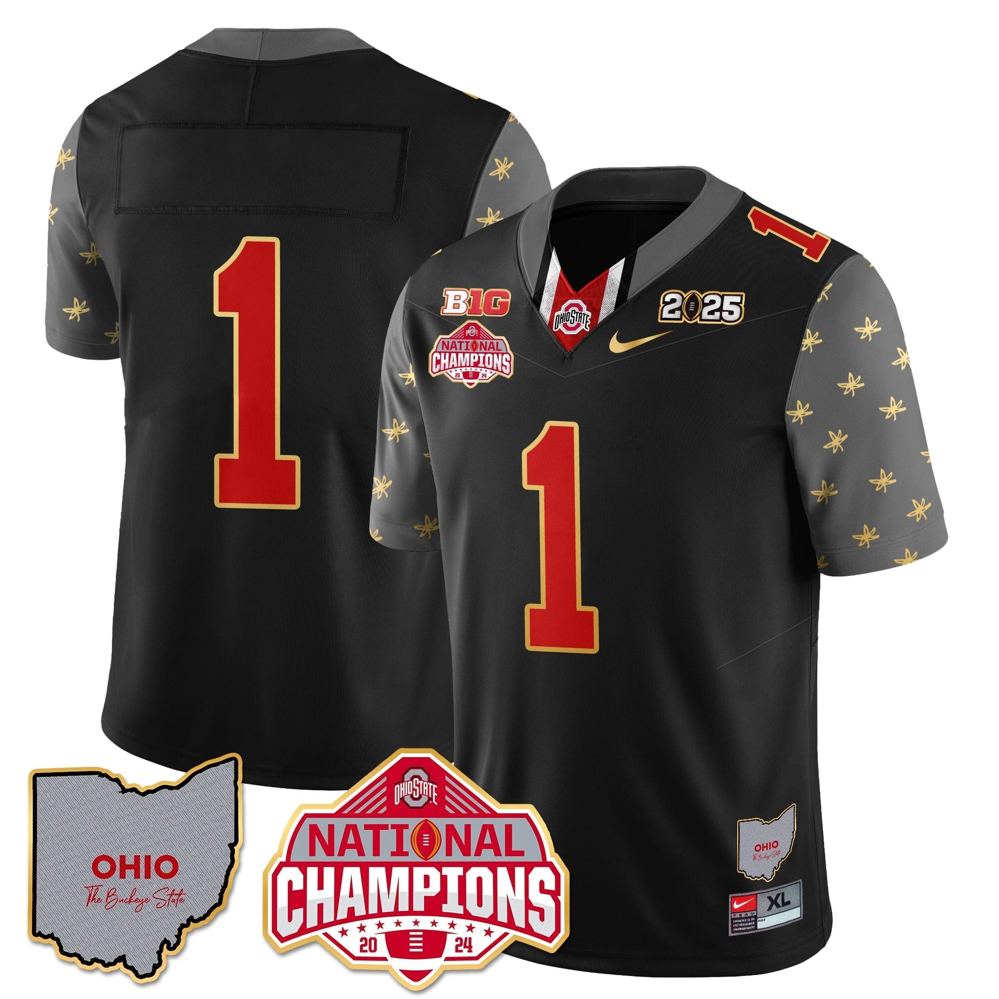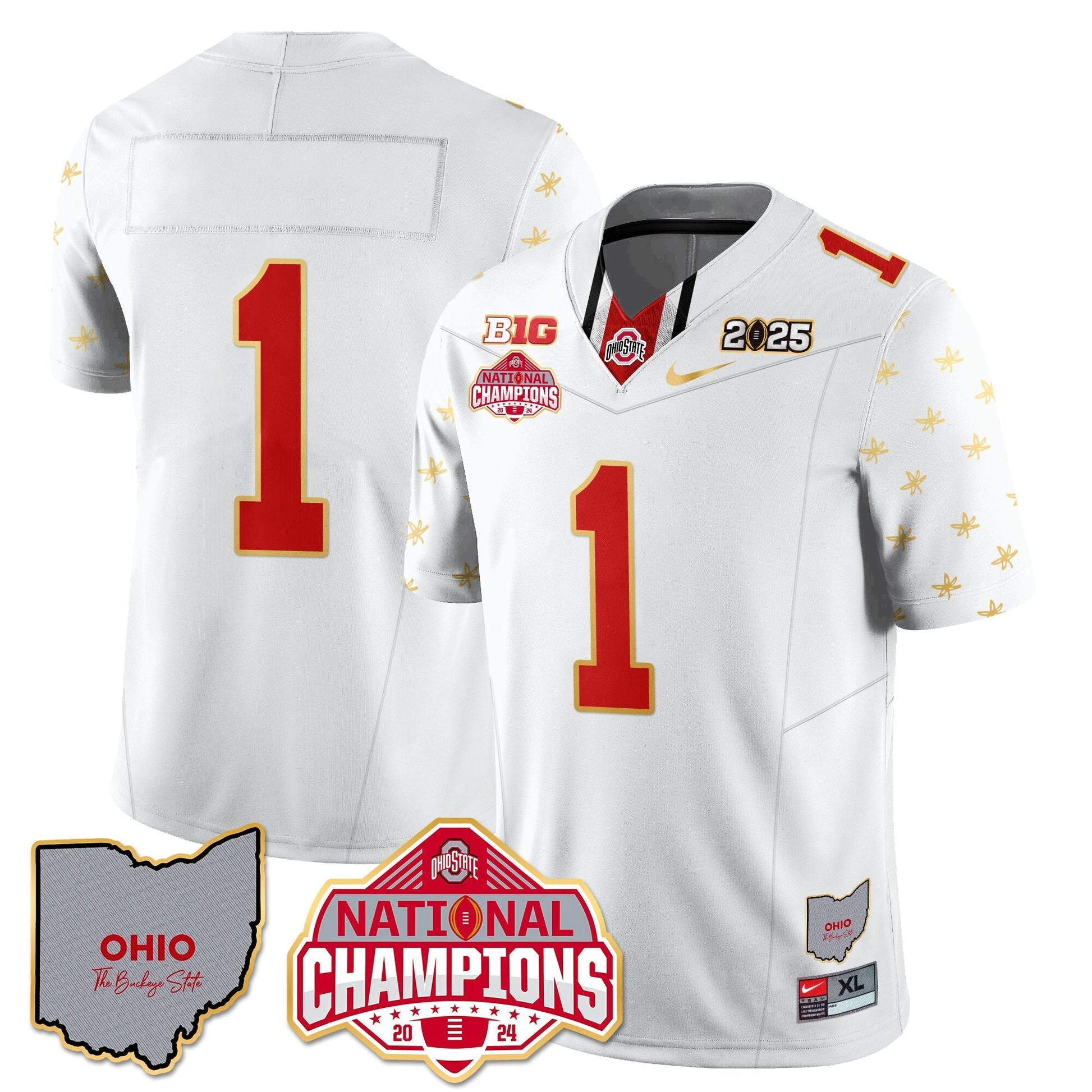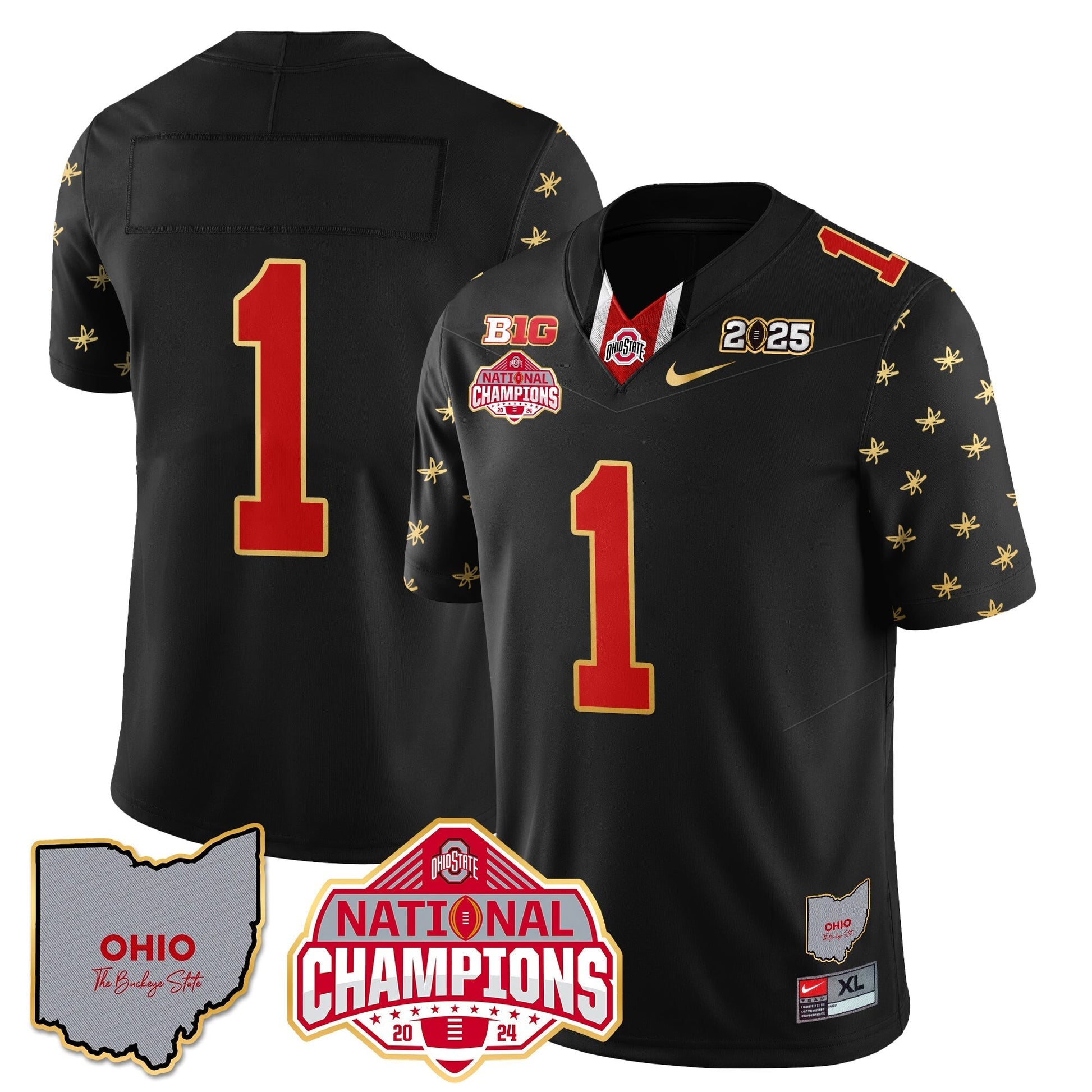 Ohio State Buckeyes 2025 CFP Patch - National Champions Gold Jersey - All Stitched