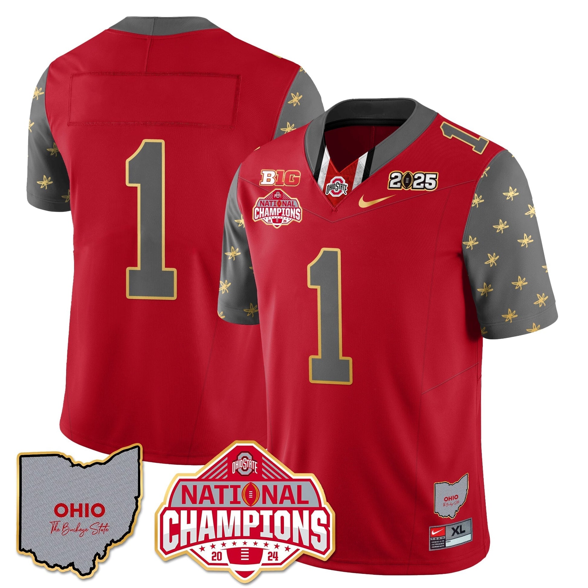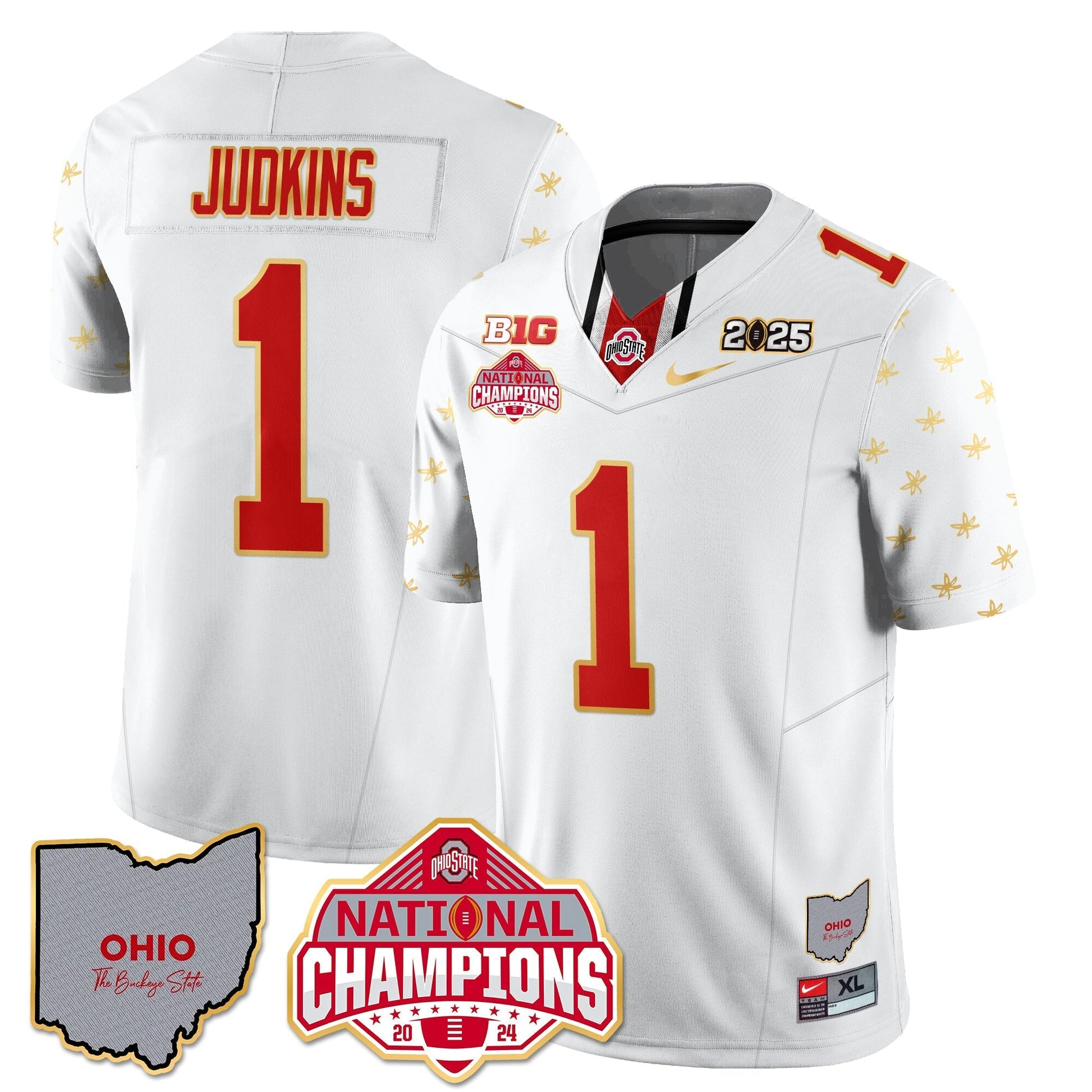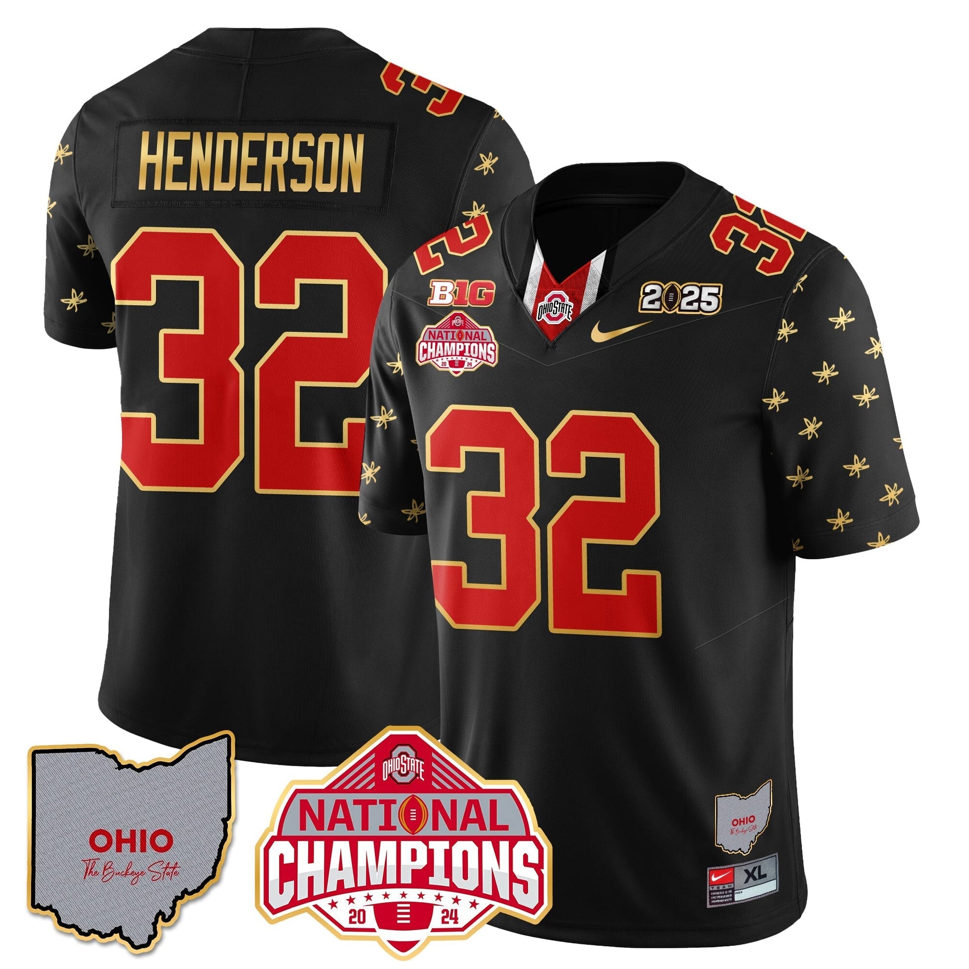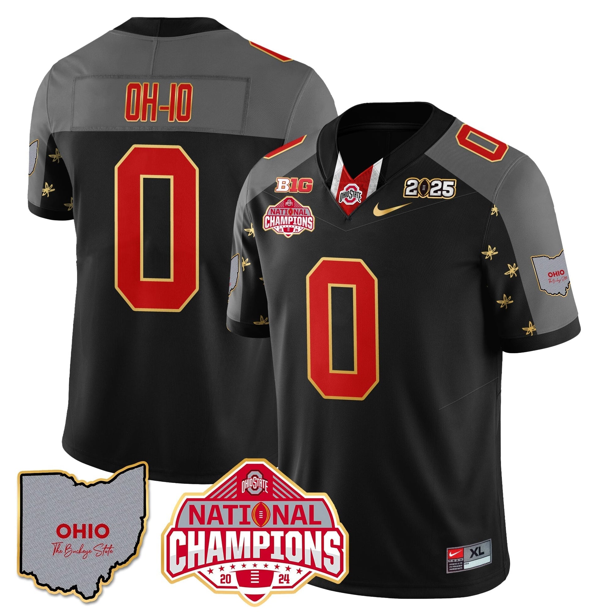 Ohio State Buckeyes 2025 CFP Patch - National Champions Gold Jersey - All Stitched