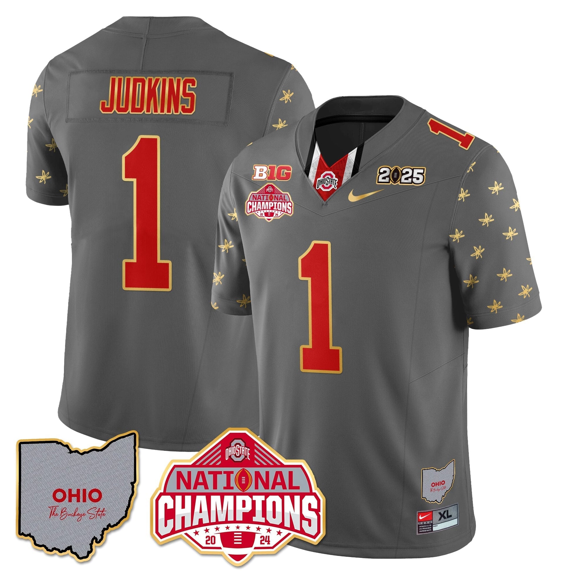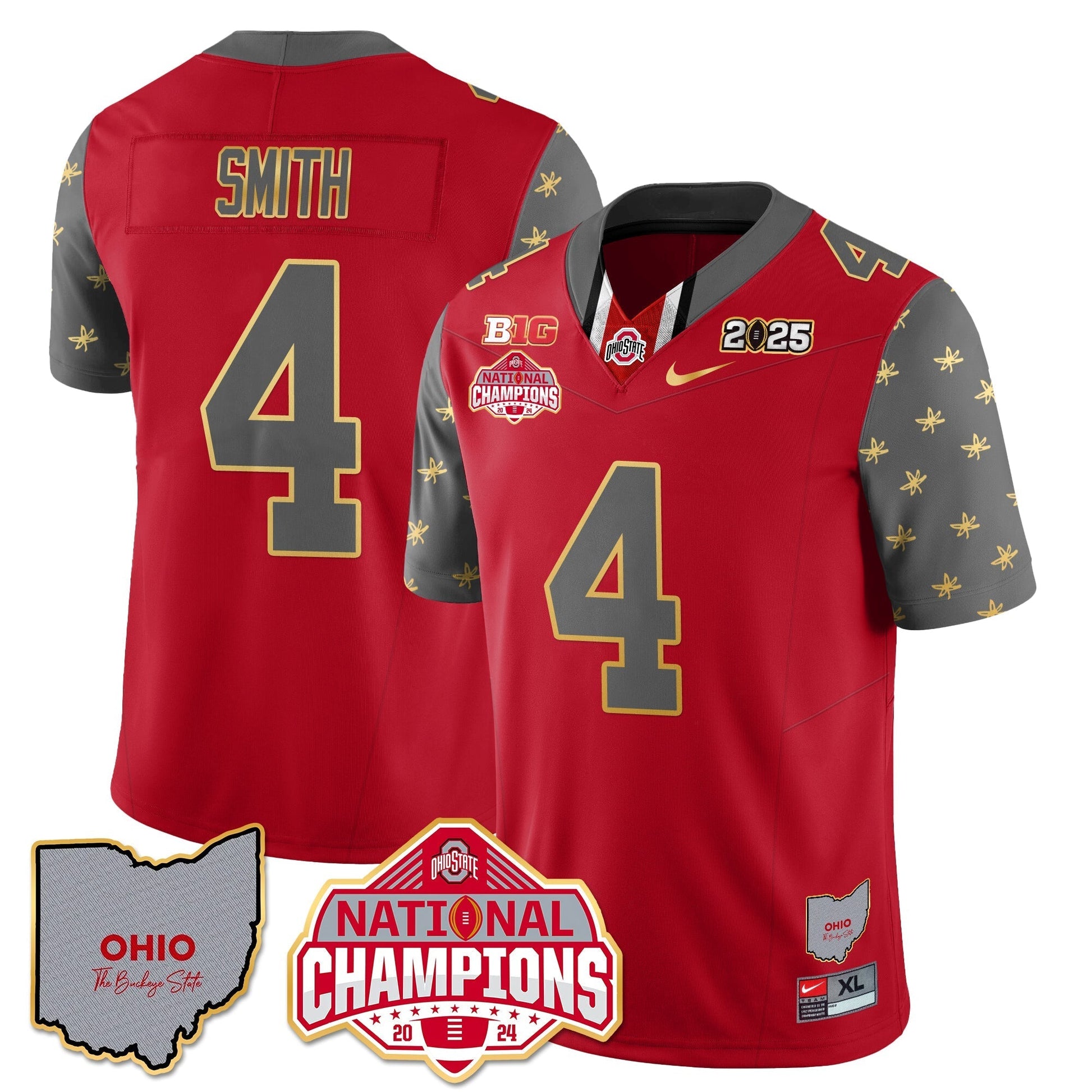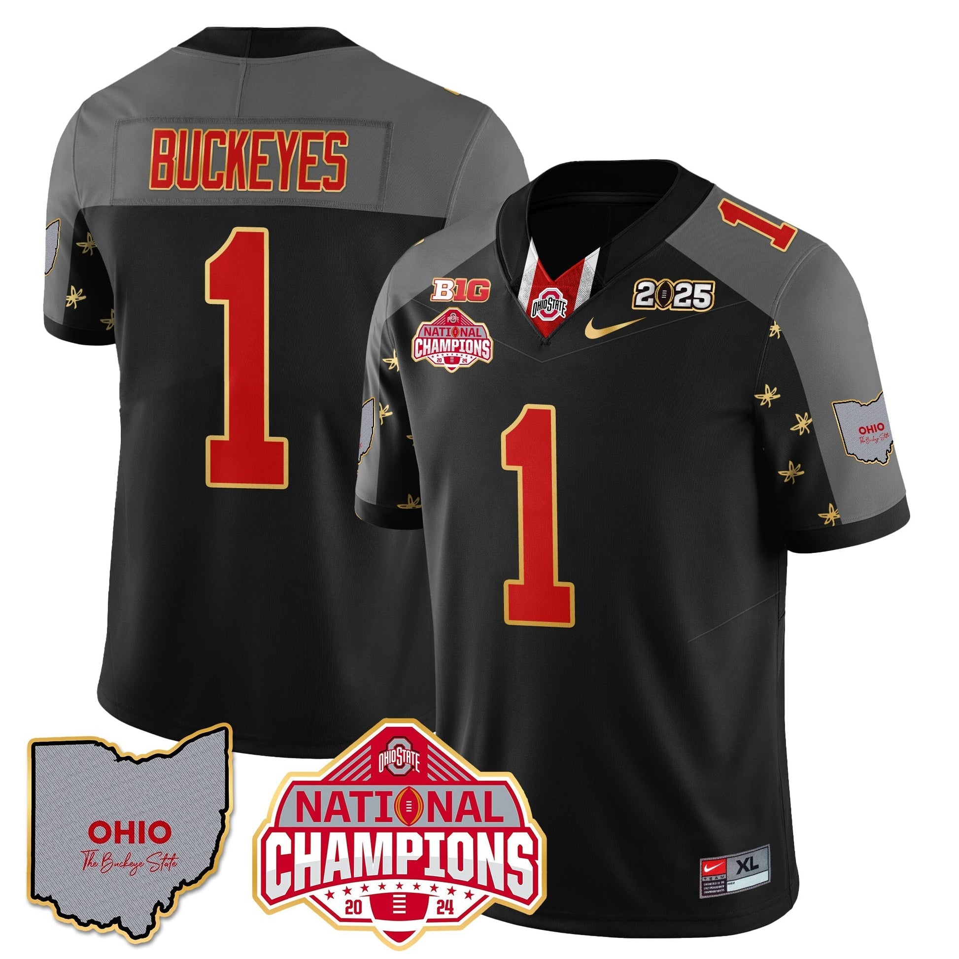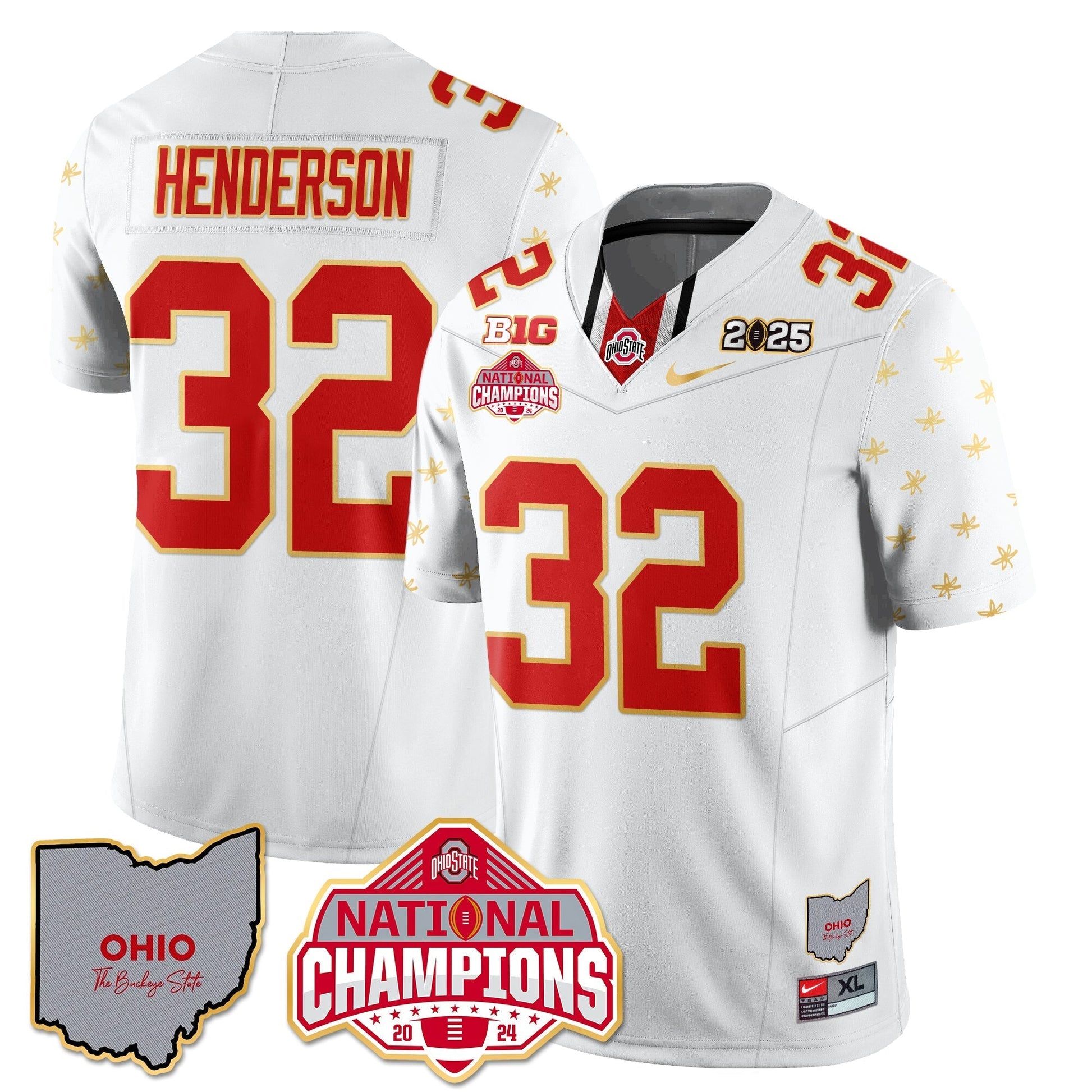 Ohio State Buckeyes 2025 CFP Patch - National Champions Gold Jersey - All Stitched