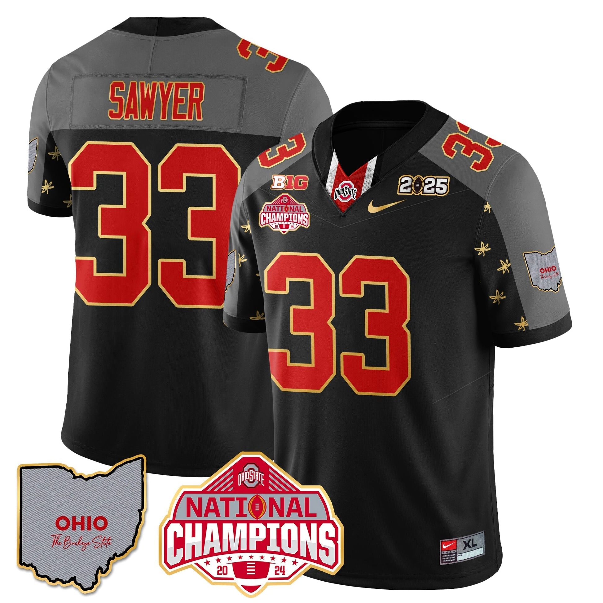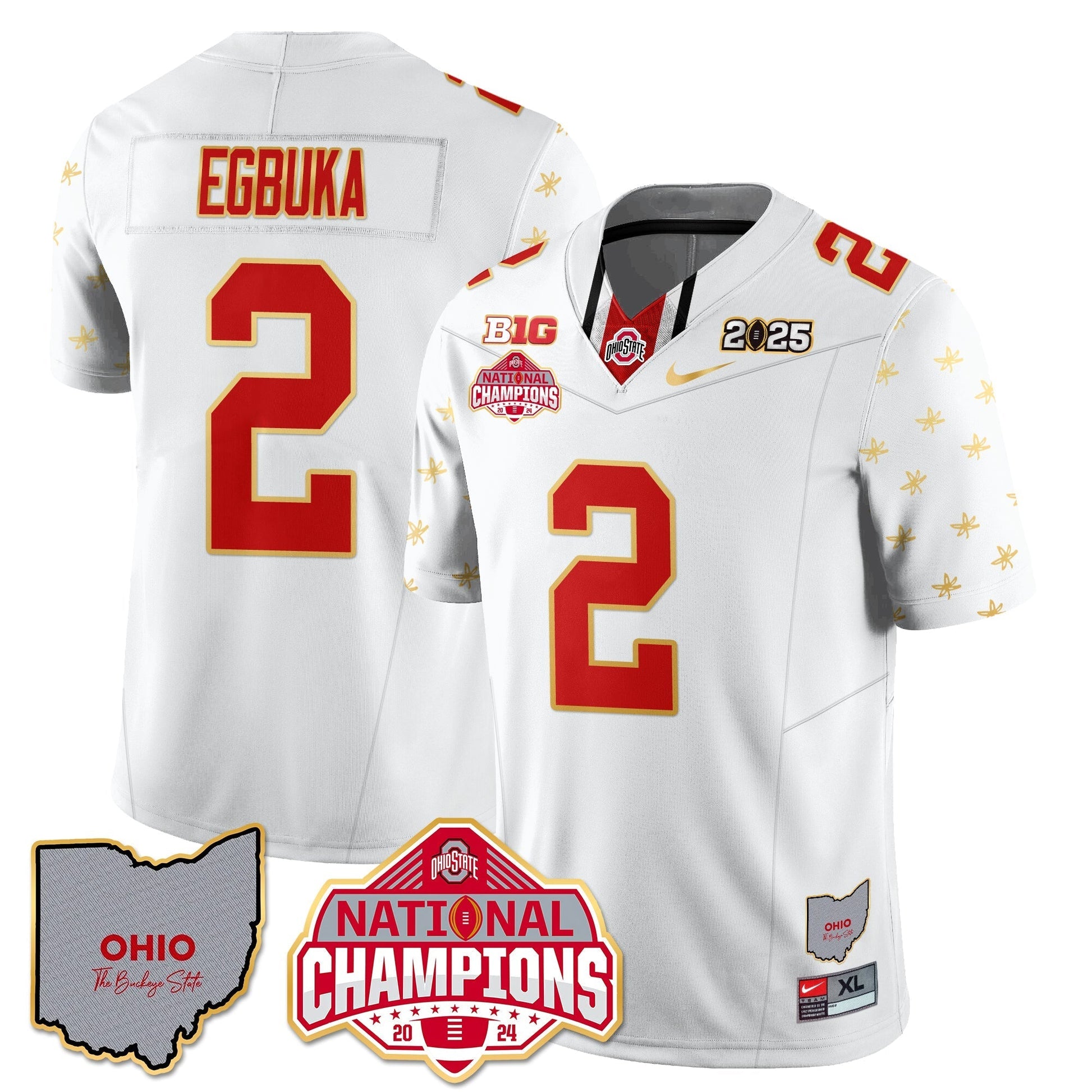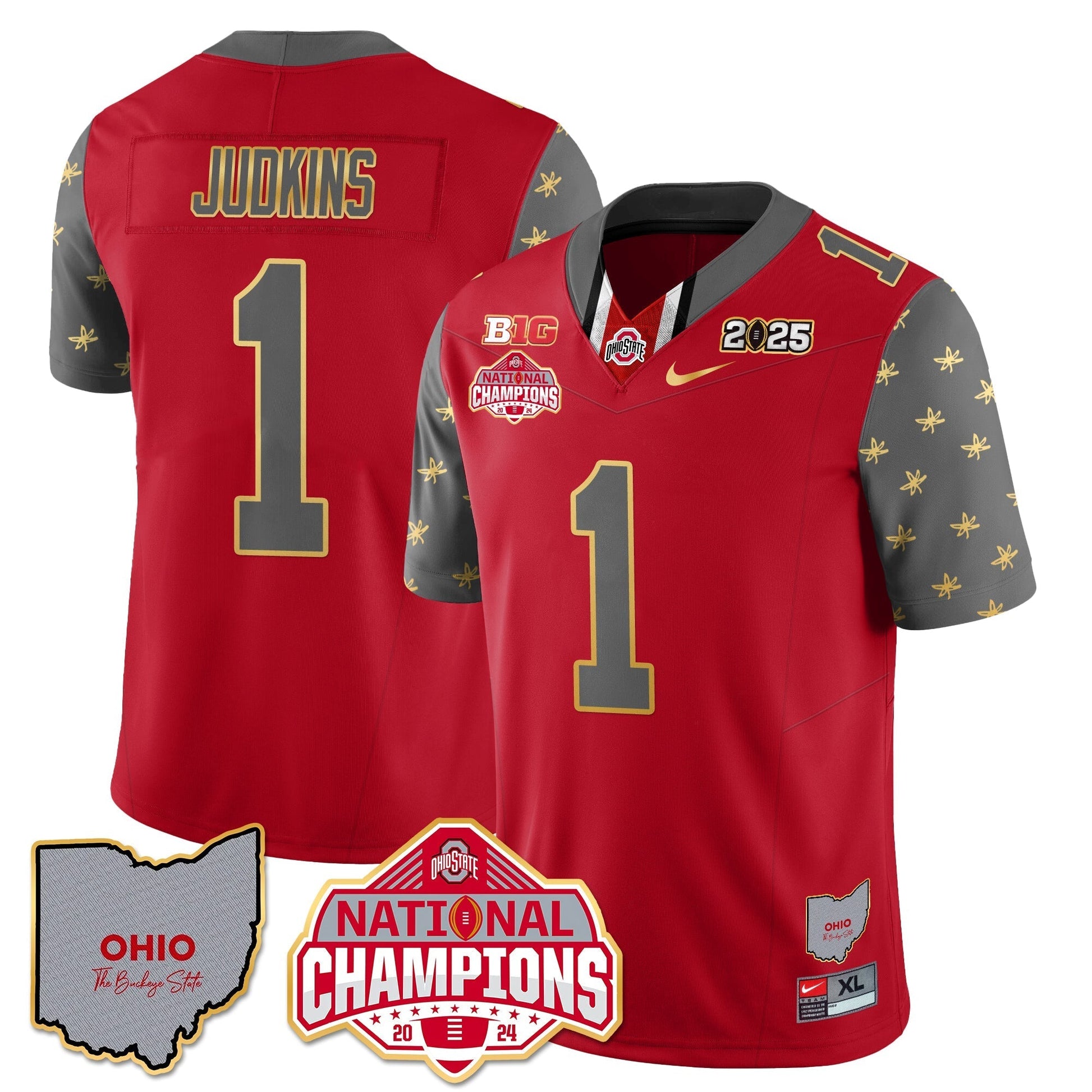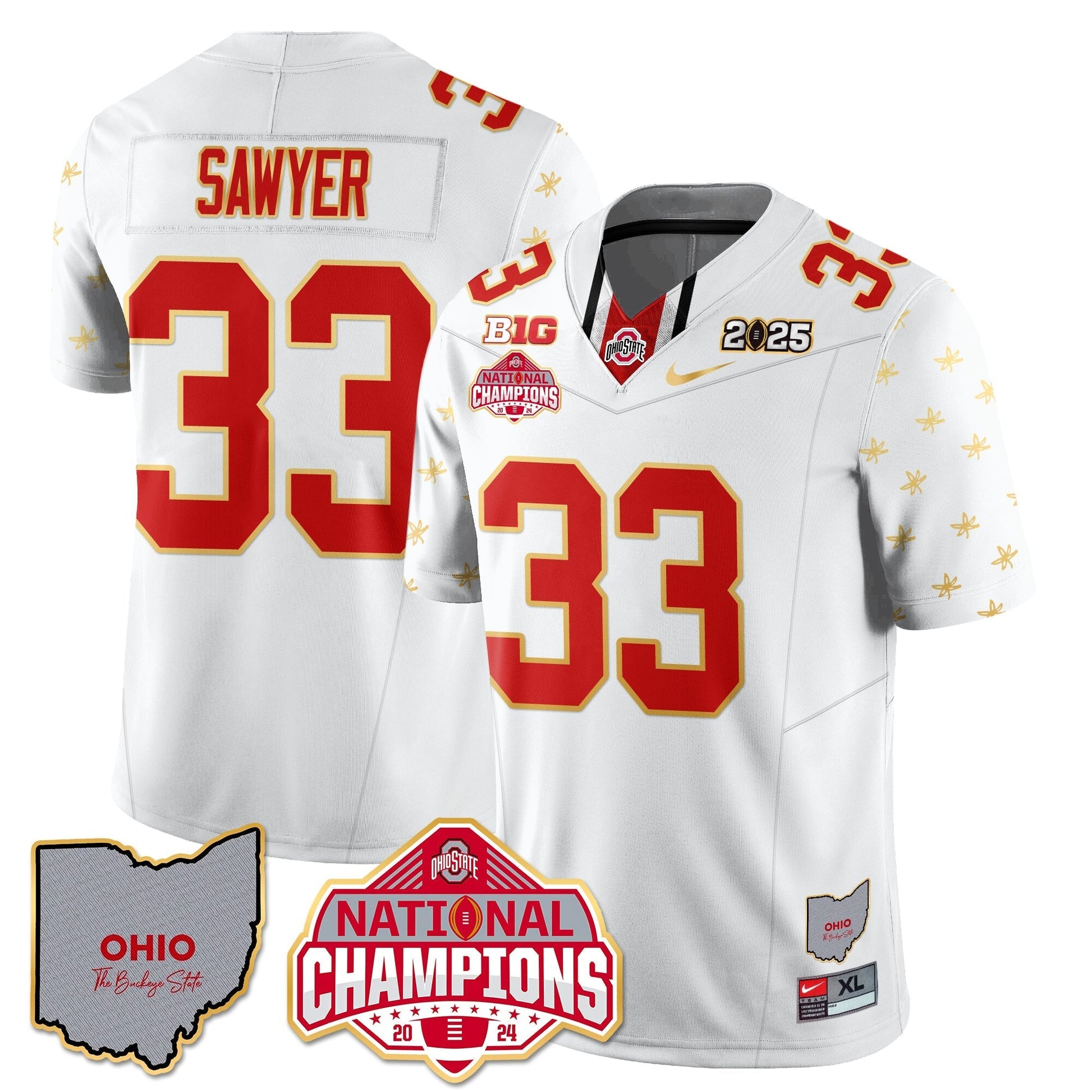 Ohio State Buckeyes 2025 CFP Patch - National Champions Gold Jersey - All Stitched