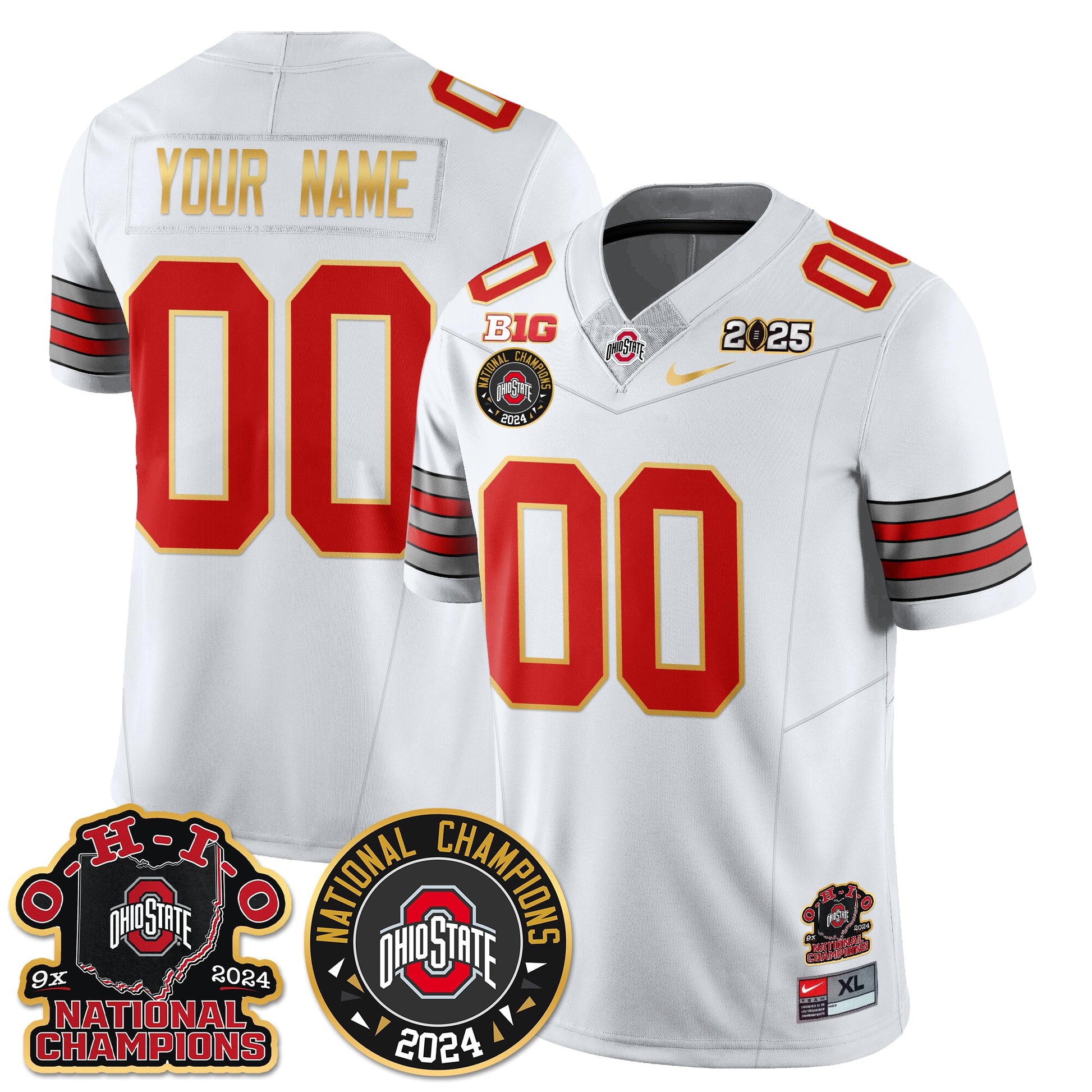 Ohio State Buckeyes 'Heritage Stripe' 2025 CFP Patch - National Champions Gold Custom Jersey N5 - All Stitched