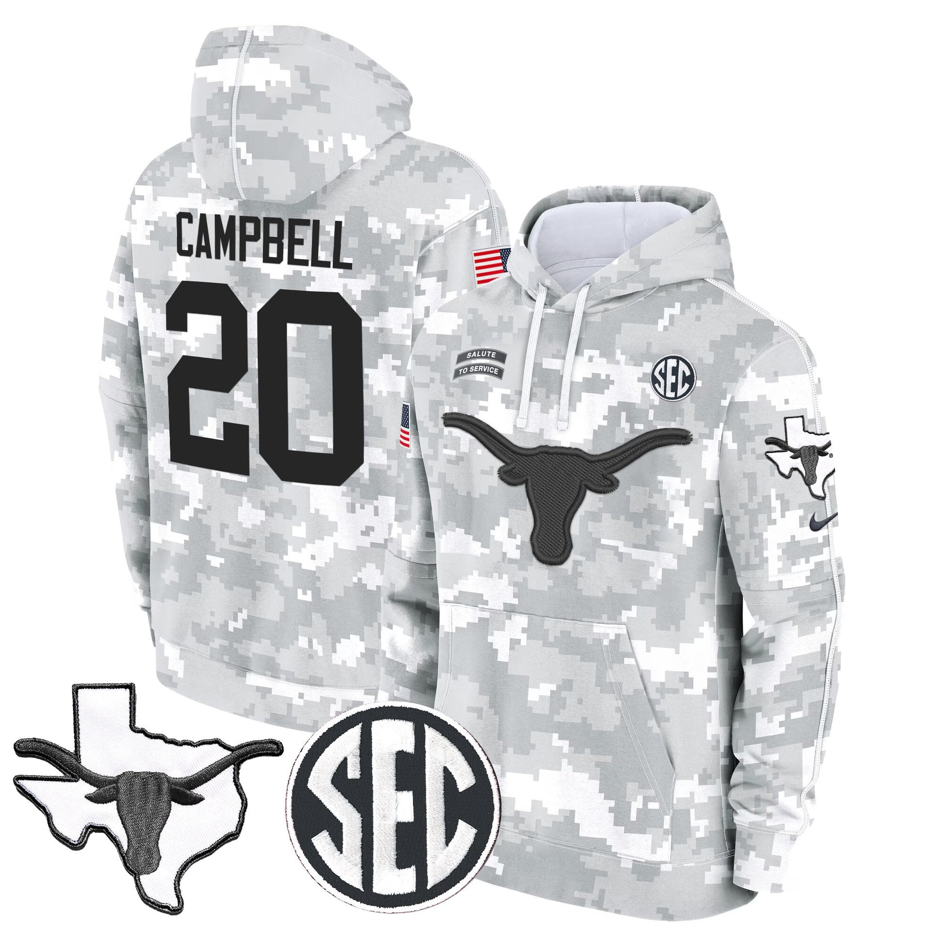 Texas Longhorns 2024 Salute to Service Fleece Pullover Hoodie
