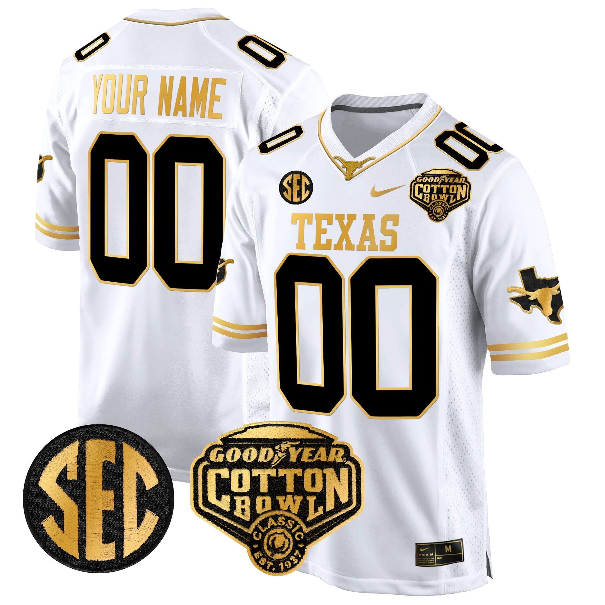 TEX Cotton Bowl Patch Gold Game Custom Jersey - All Stitched