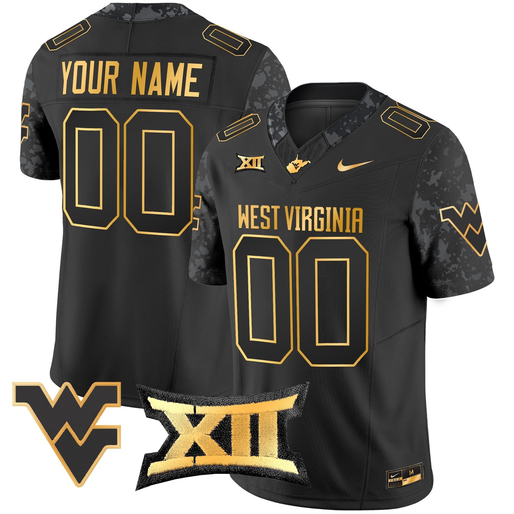 West Virginia Mountaineers 2024 Gold Vapor Limited Custom Jersey - All Stitched