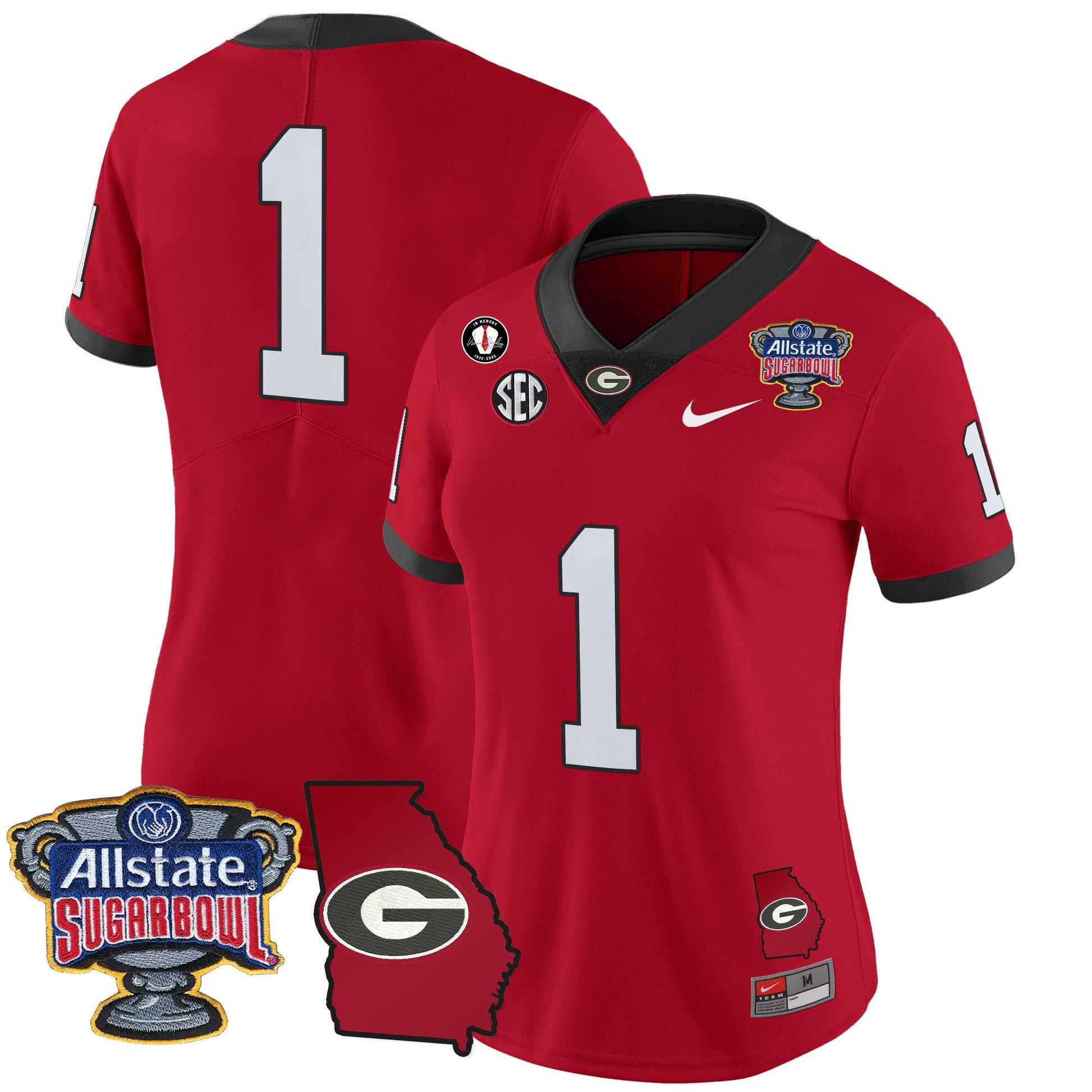 Women's Georgia Bulldogs 2025 Sugar Bowl & Georgia Map Patch Vapor Limited Jersey - All Stitched
