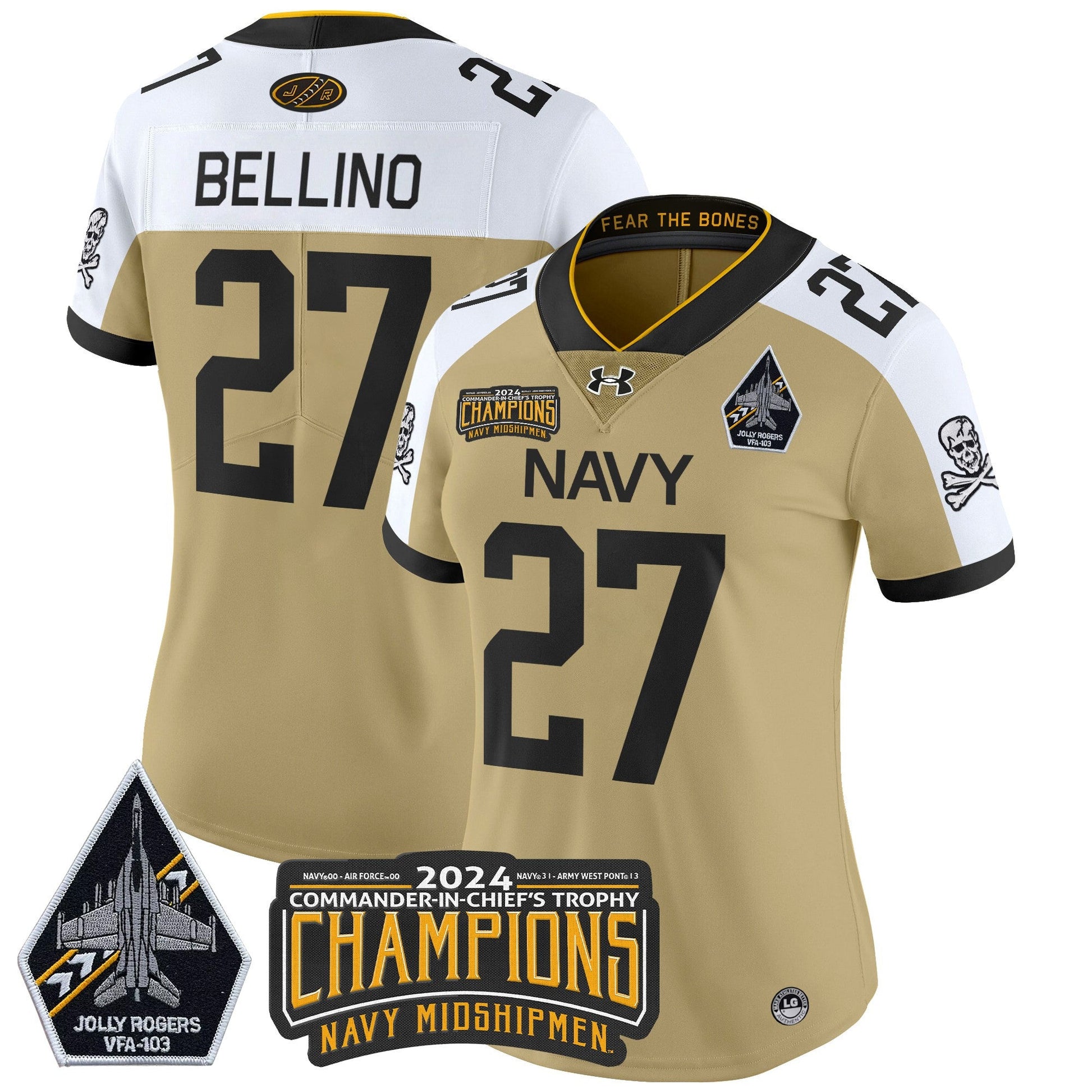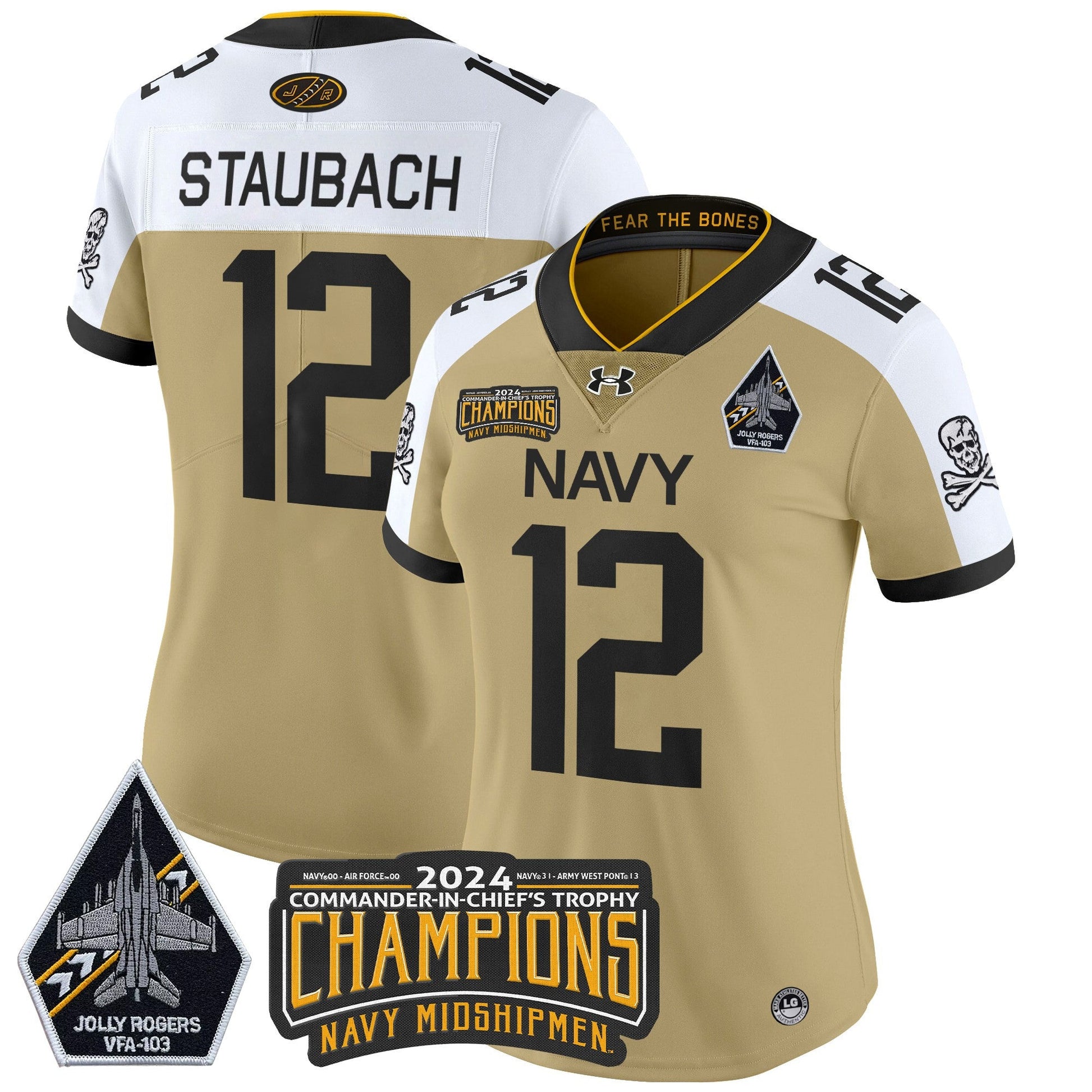 Women's Navy Midshipmen 2024 Commander-In-Chief's Trophy Champions Patch Vapor Limited Jersey - All Stitched