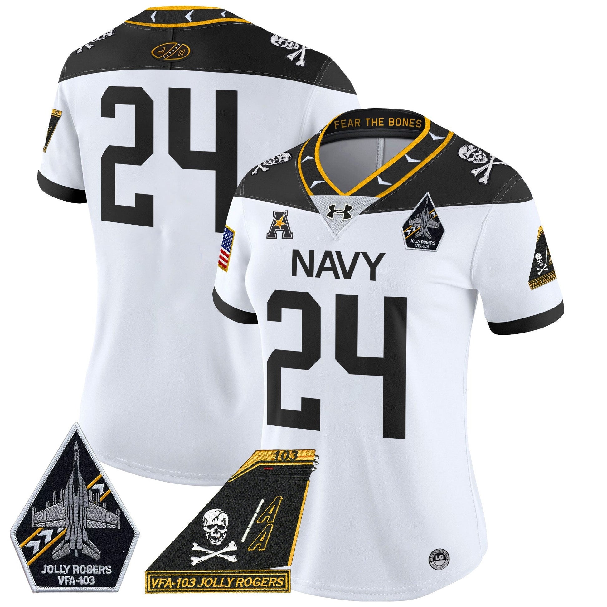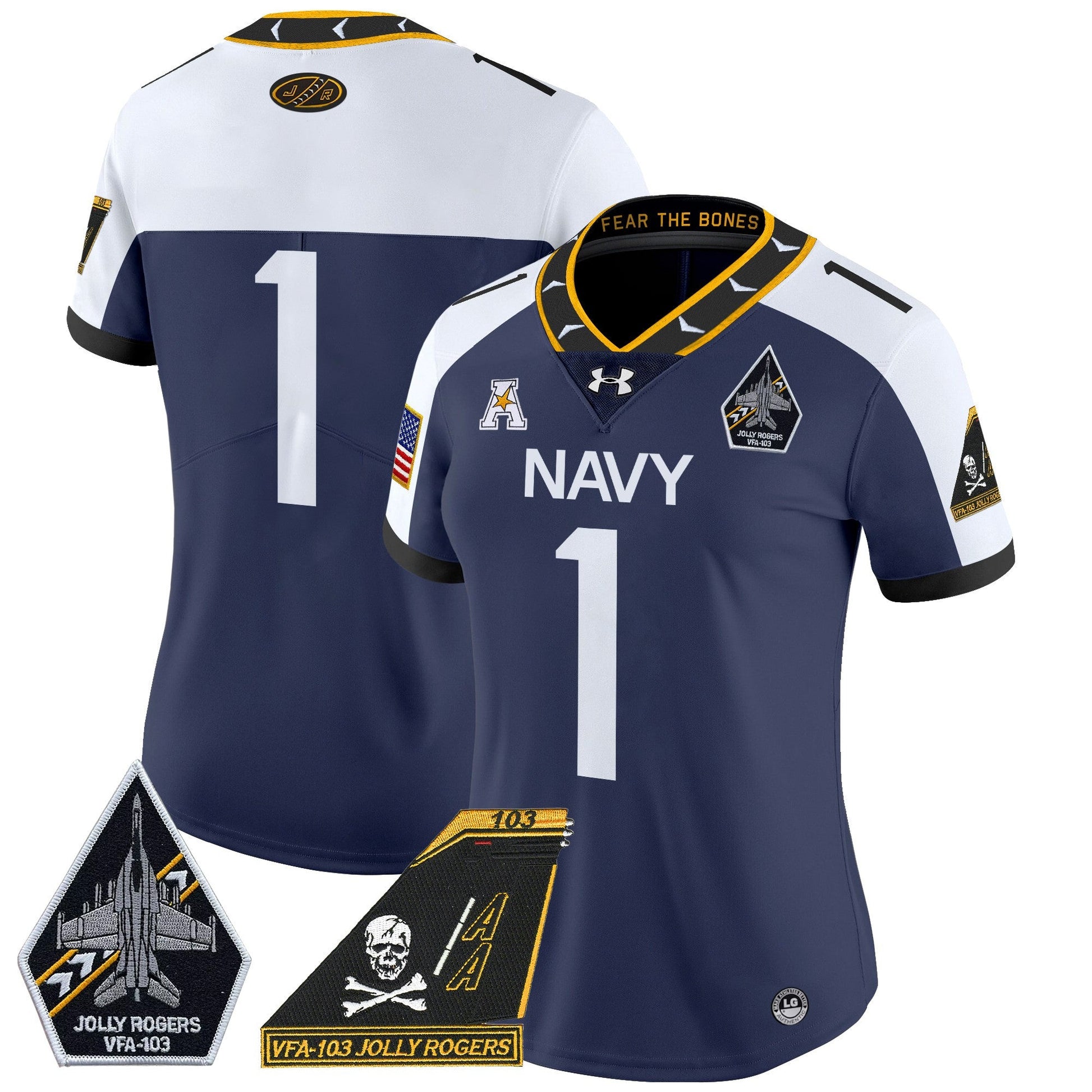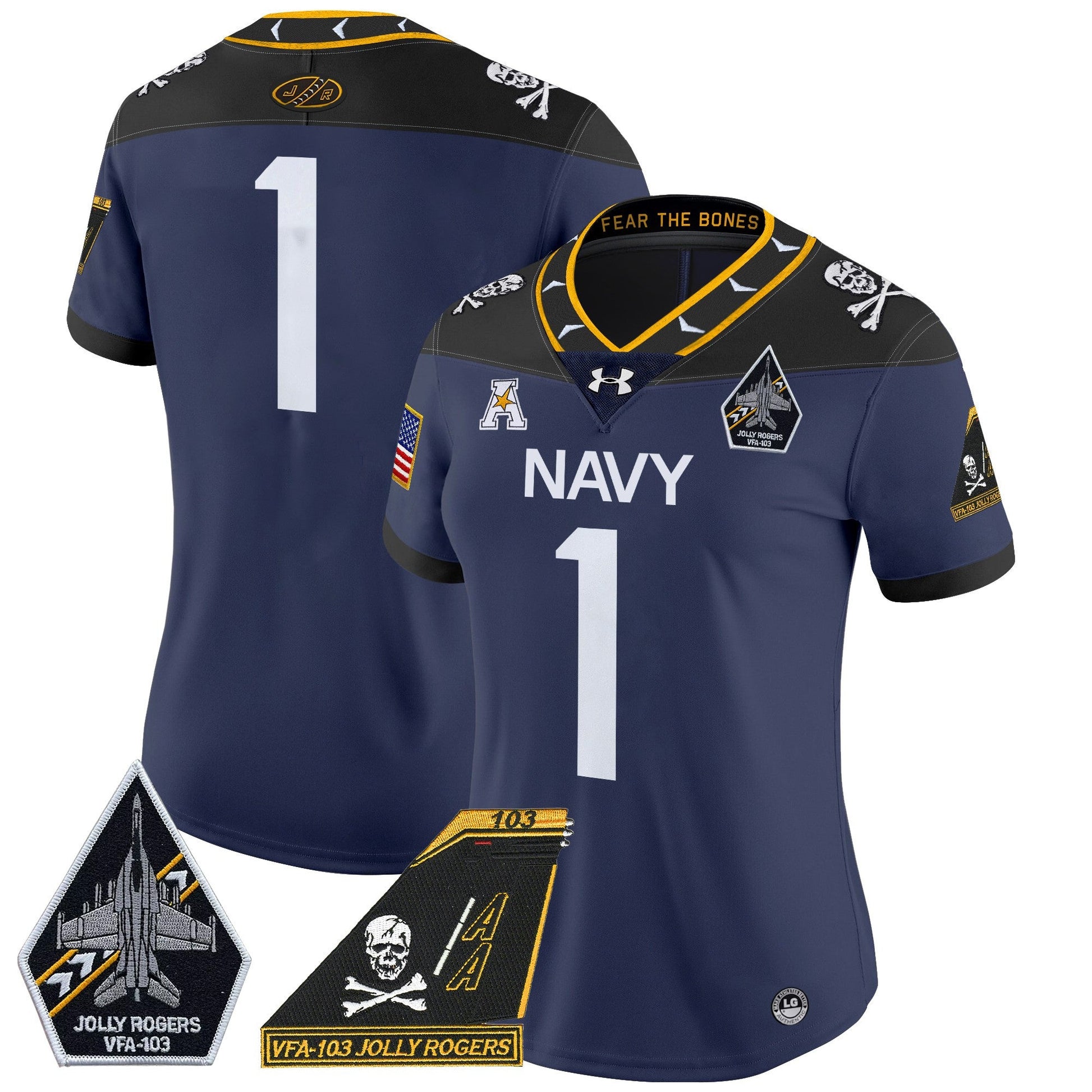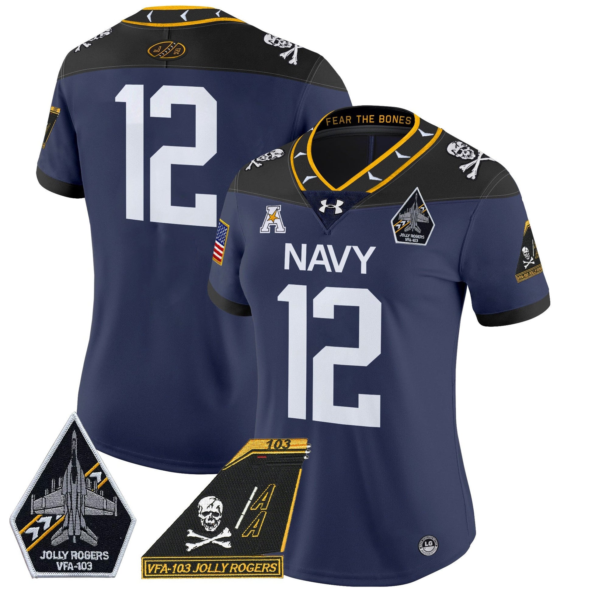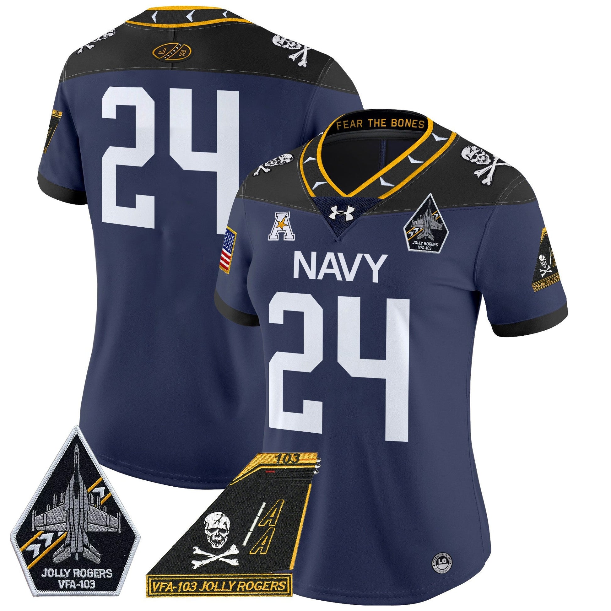 Women's Navy Midshipmen 2024 Jolly Rogers Patch Vapor Limited Jersey - All Stitched