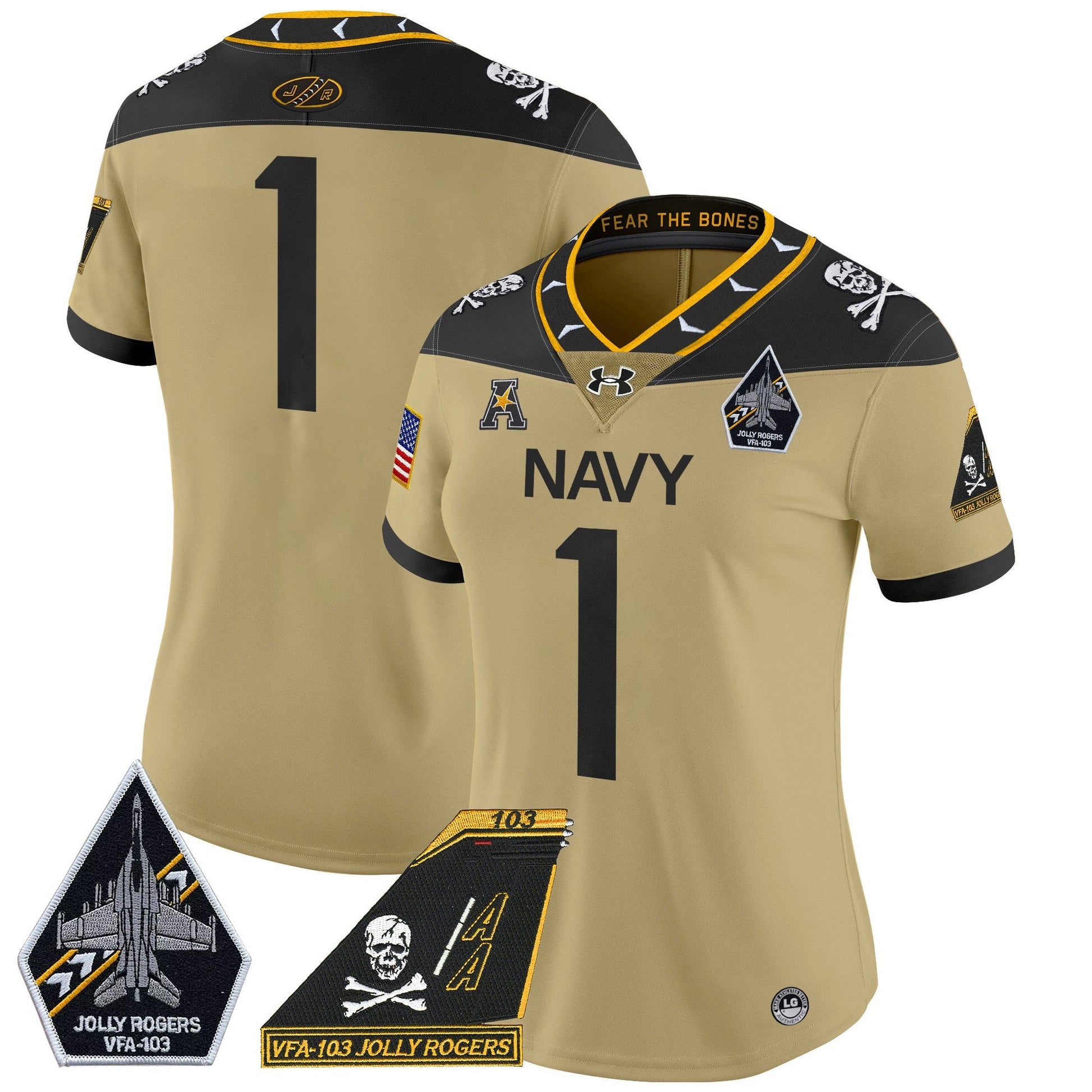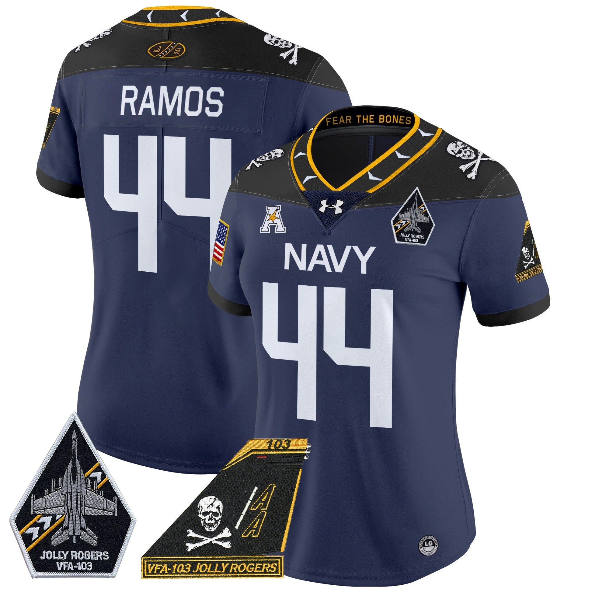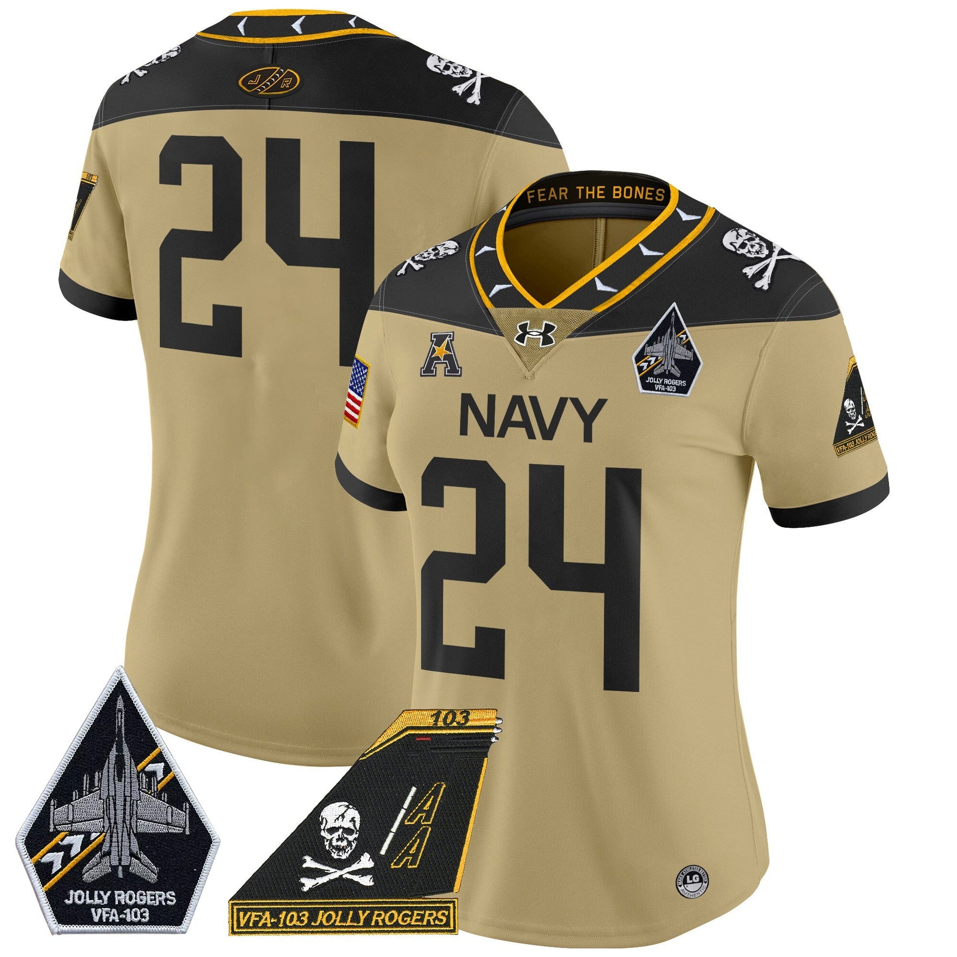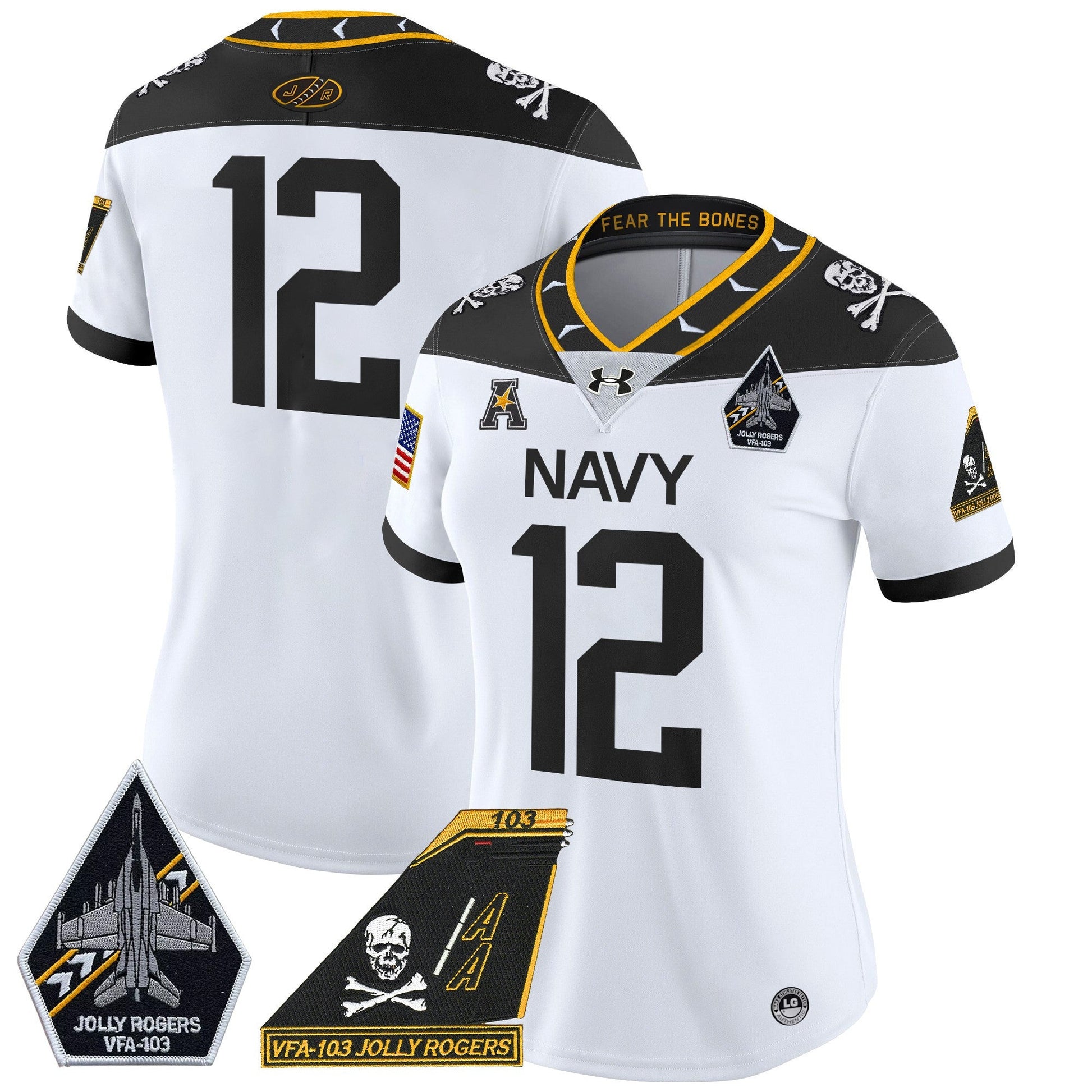 Women's Navy Midshipmen 2024 Jolly Rogers Patch Vapor Limited Jersey - All Stitched