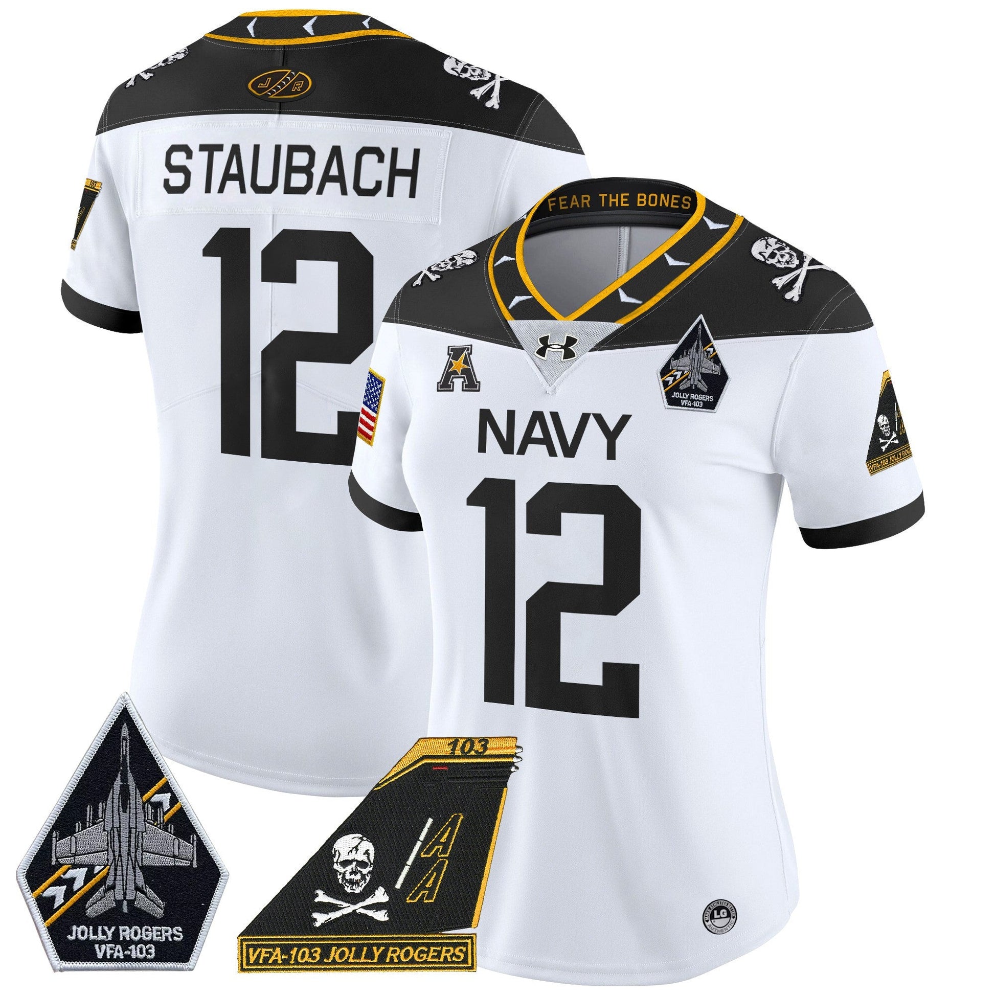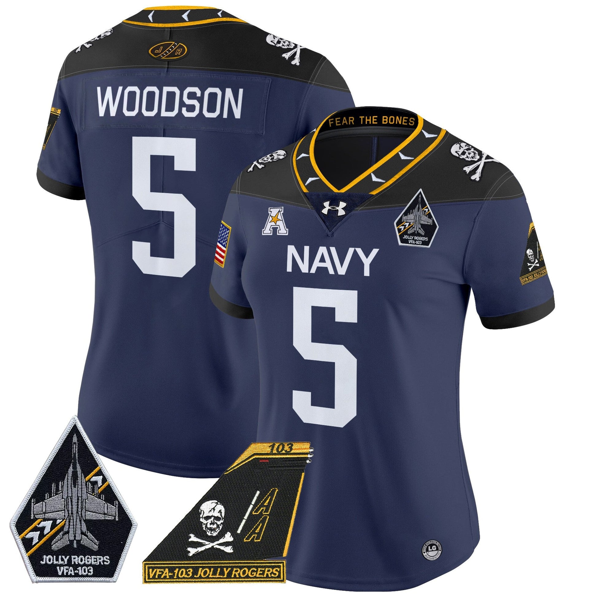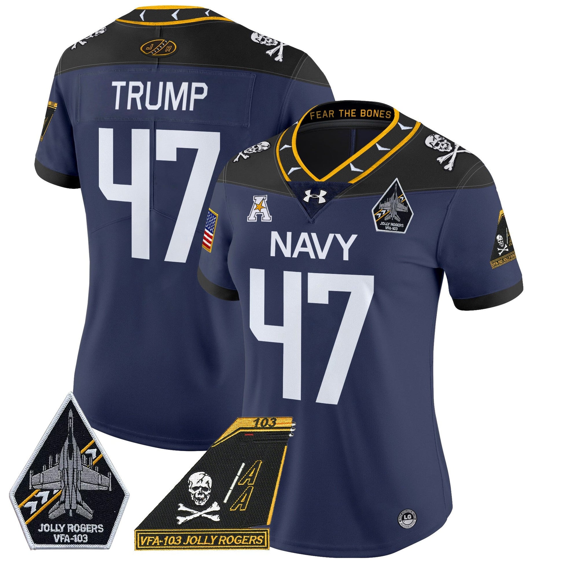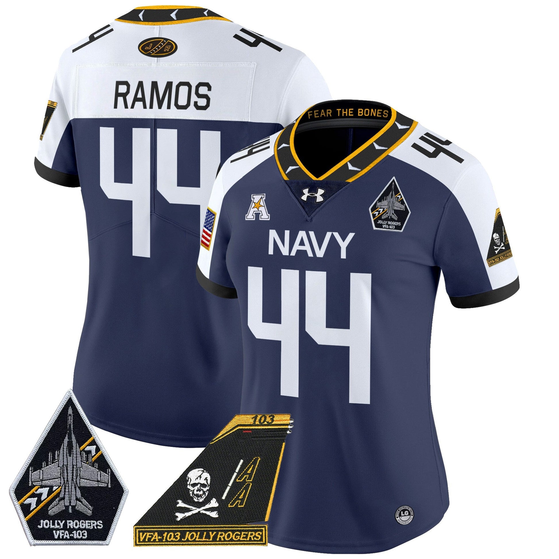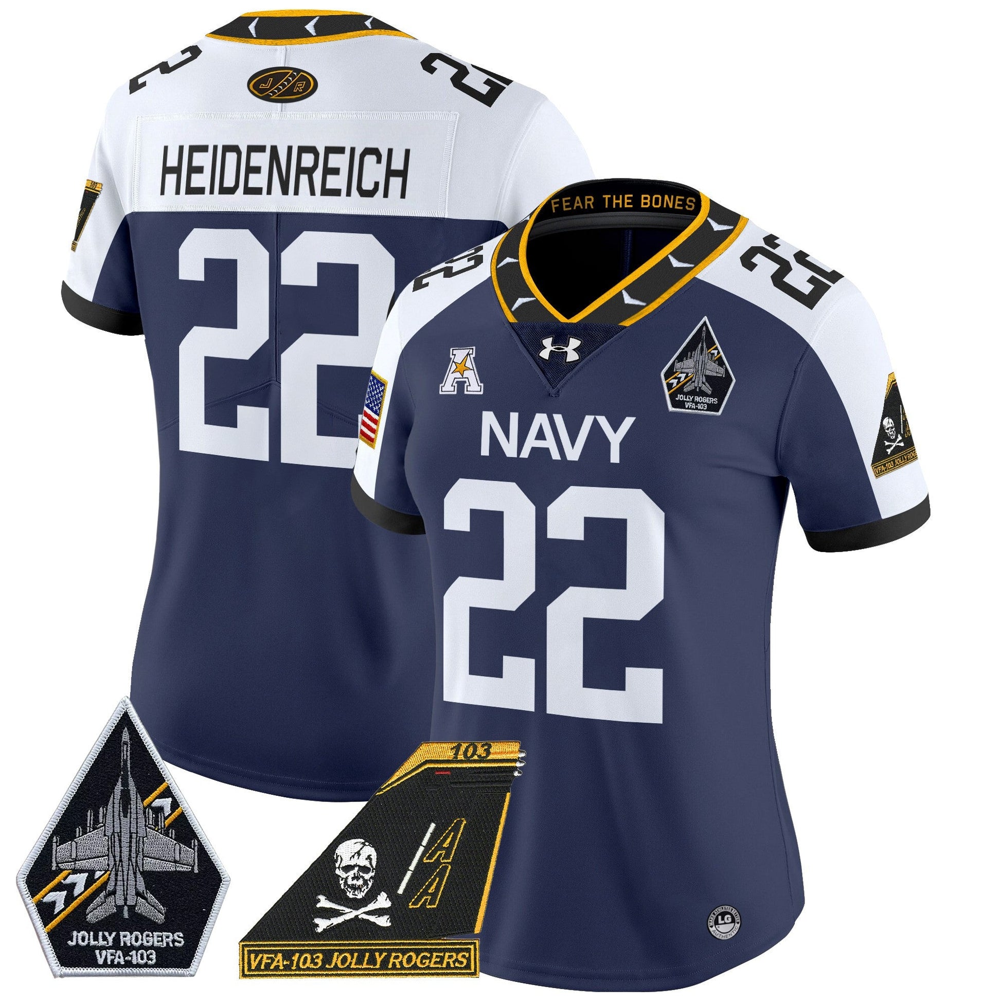 Women's Navy Midshipmen 2024 Jolly Rogers Patch Vapor Limited Jersey - All Stitched