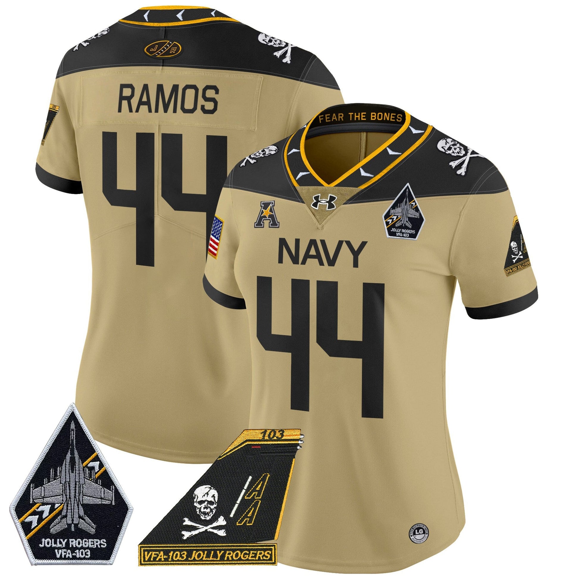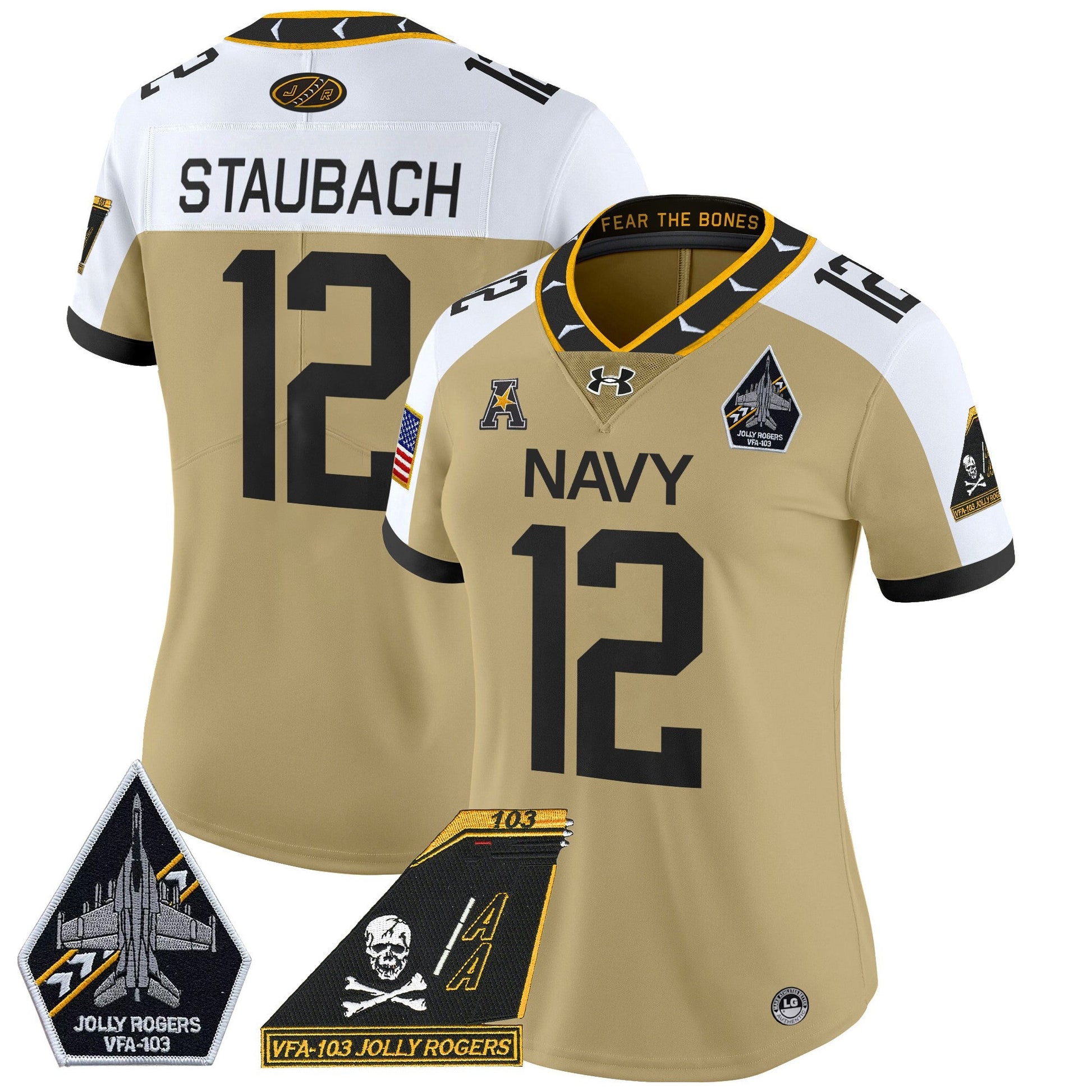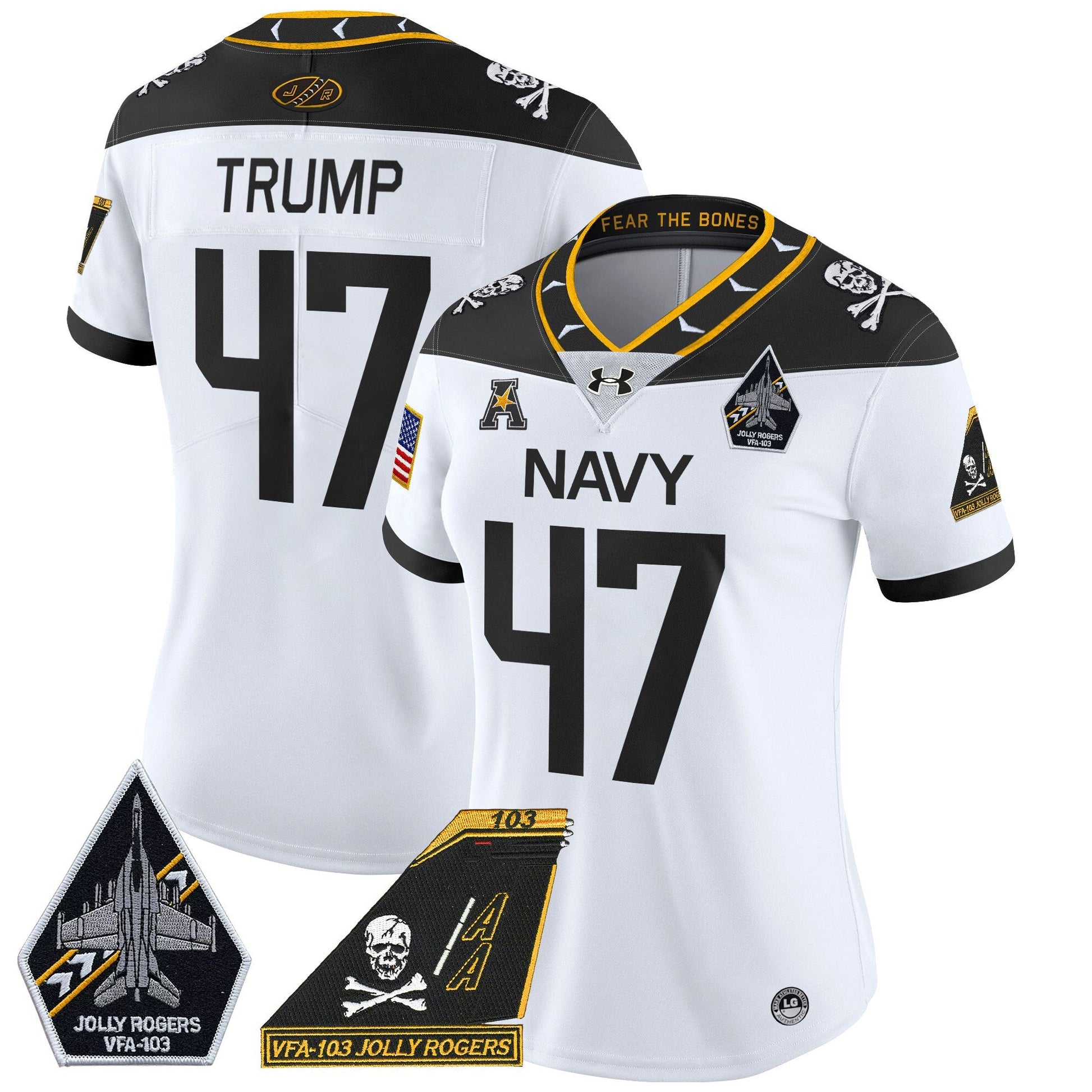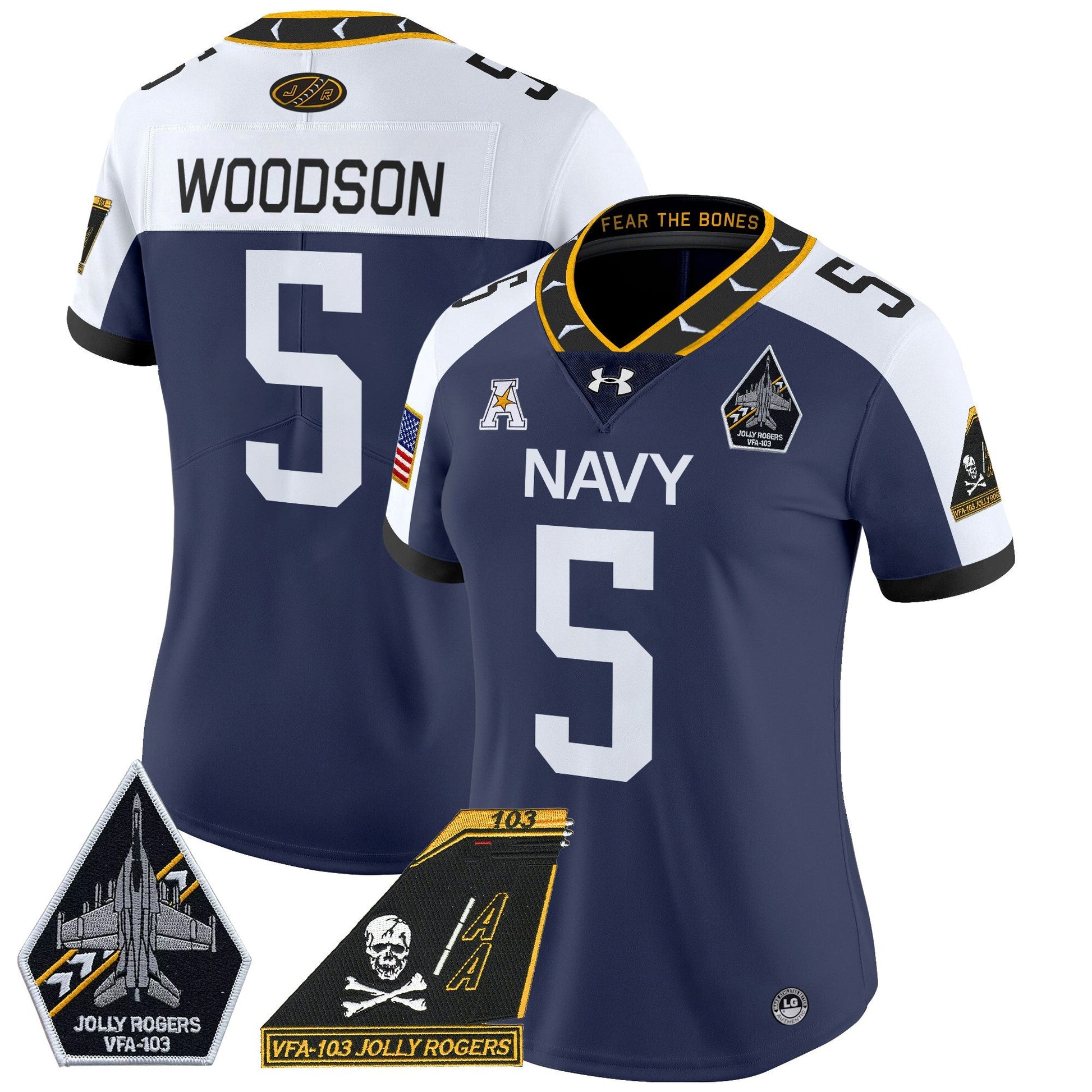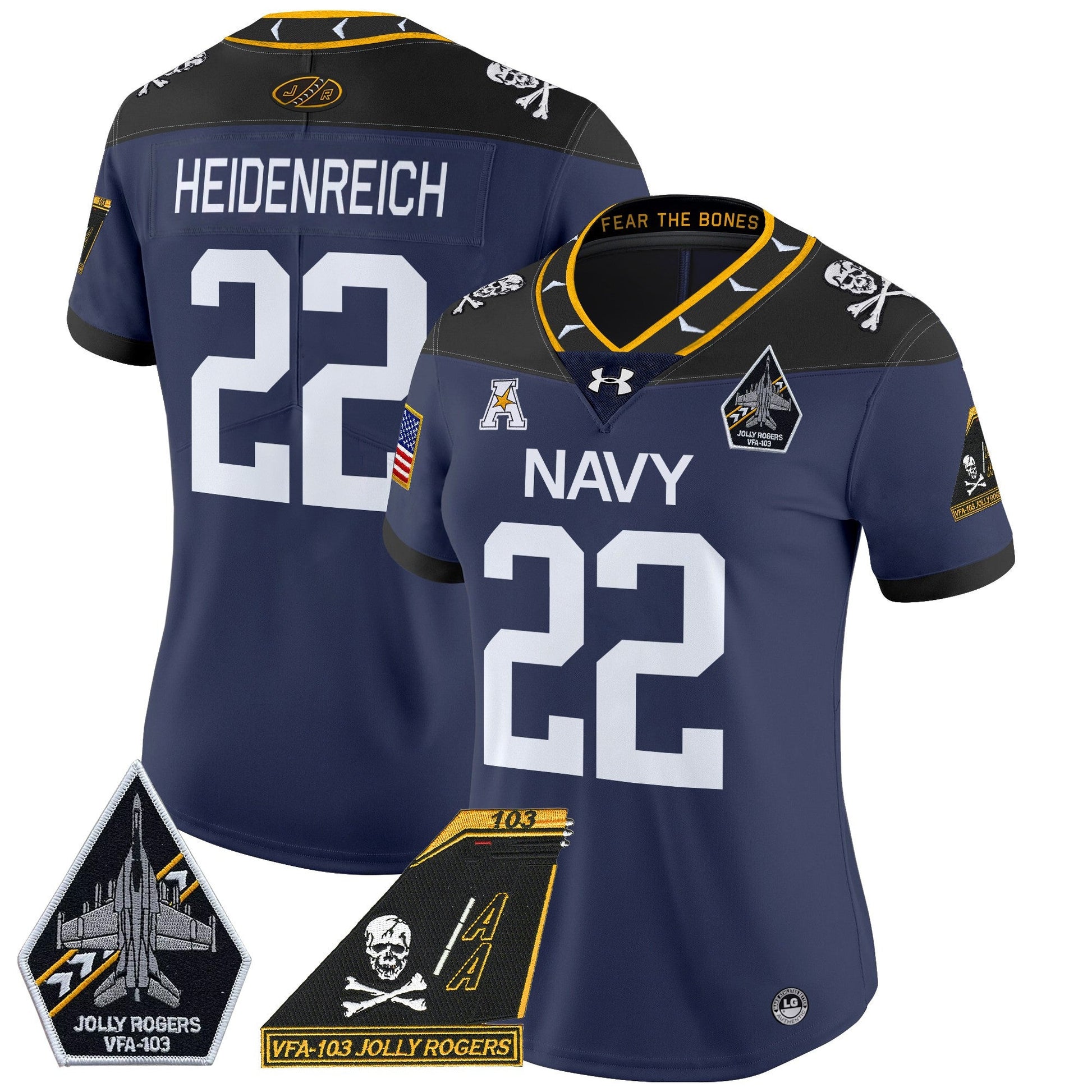 Women's Navy Midshipmen 2024 Jolly Rogers Patch Vapor Limited Jersey - All Stitched
